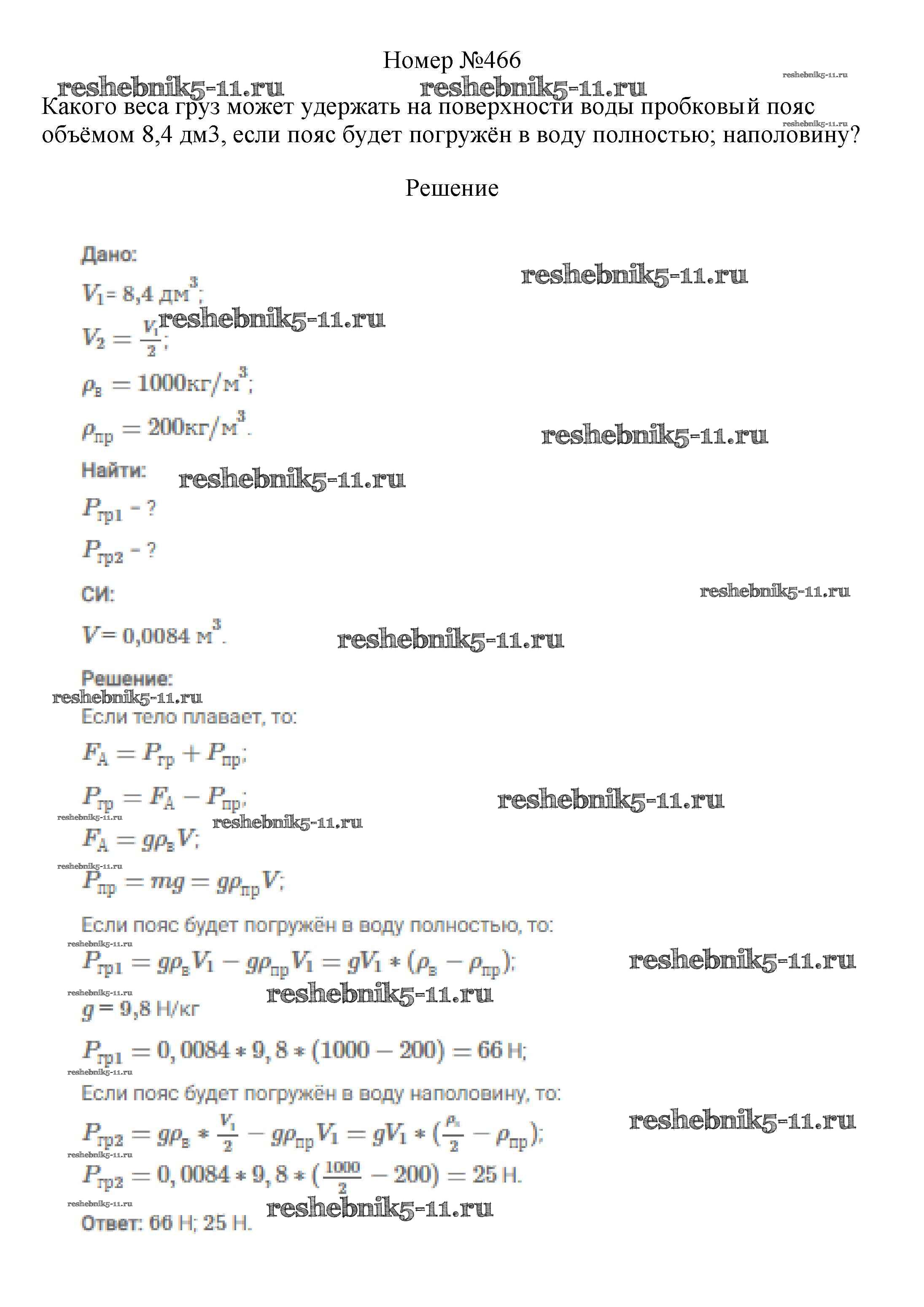 Готовая домашняя работа с ответами по Физике за 7, 8, 9 класс Марон, Позойский Сборник вопросов и задач Вертикаль Дрофа 2013 ФГОС - 7 класс 466
