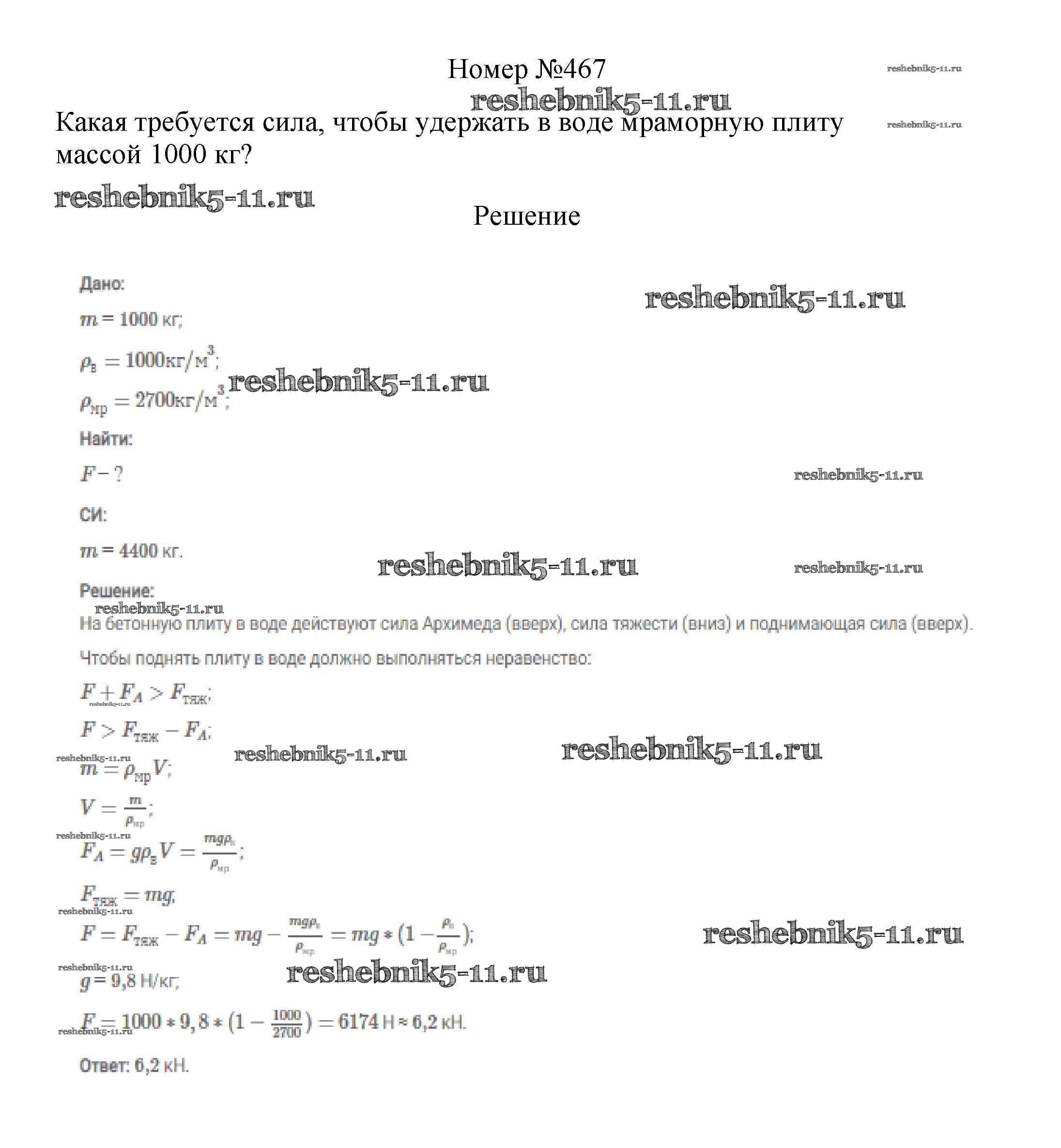Готовая домашняя работа с ответами по Физике за 7, 8, 9 класс Марон, Позойский Сборник вопросов и задач Вертикаль Дрофа 2013 ФГОС - 7 класс 467