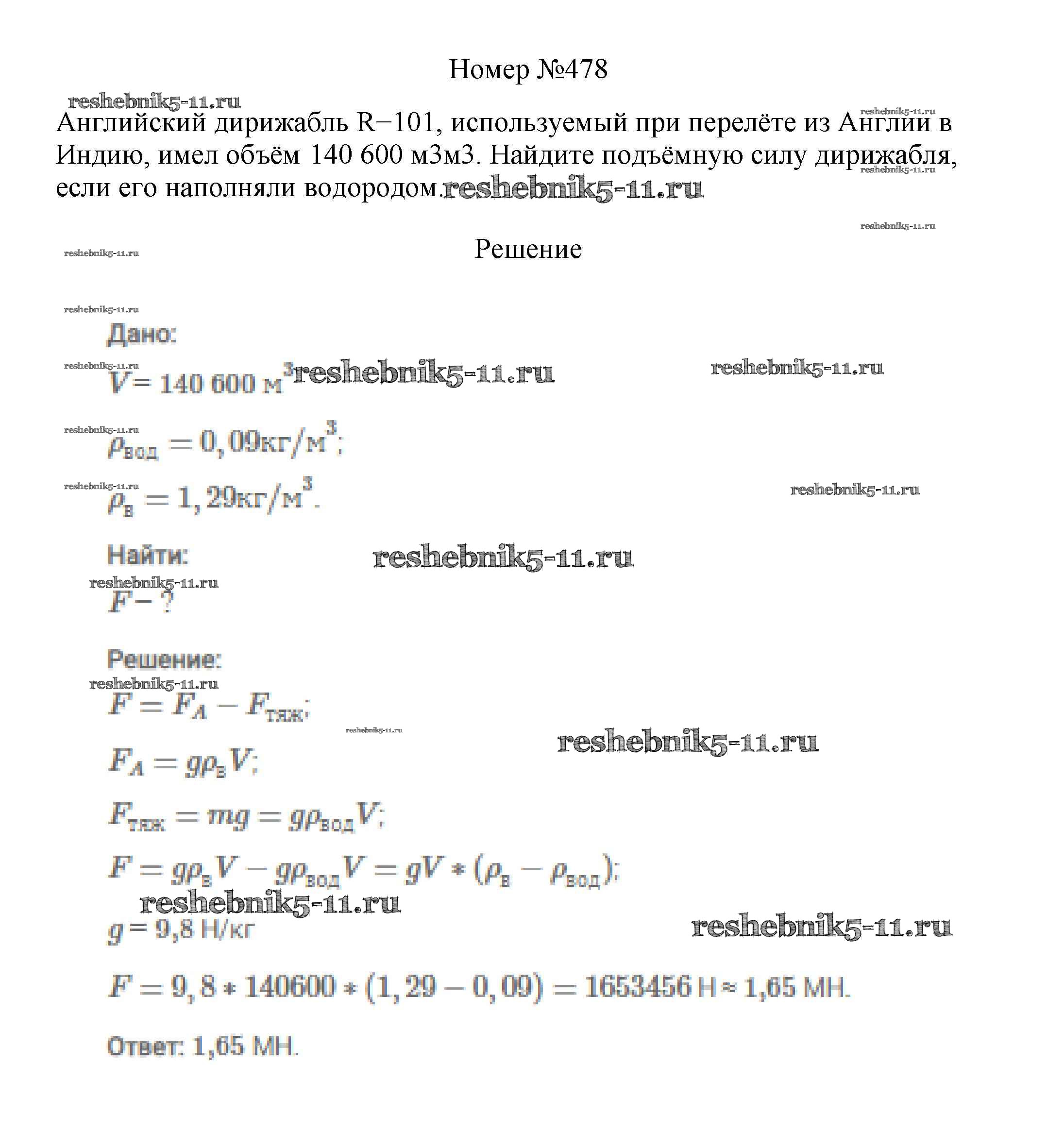 Готовая домашняя работа с ответами по Физике за 7, 8, 9 класс Марон, Позойский Сборник вопросов и задач Вертикаль Дрофа 2013 ФГОС - 7 класс 478