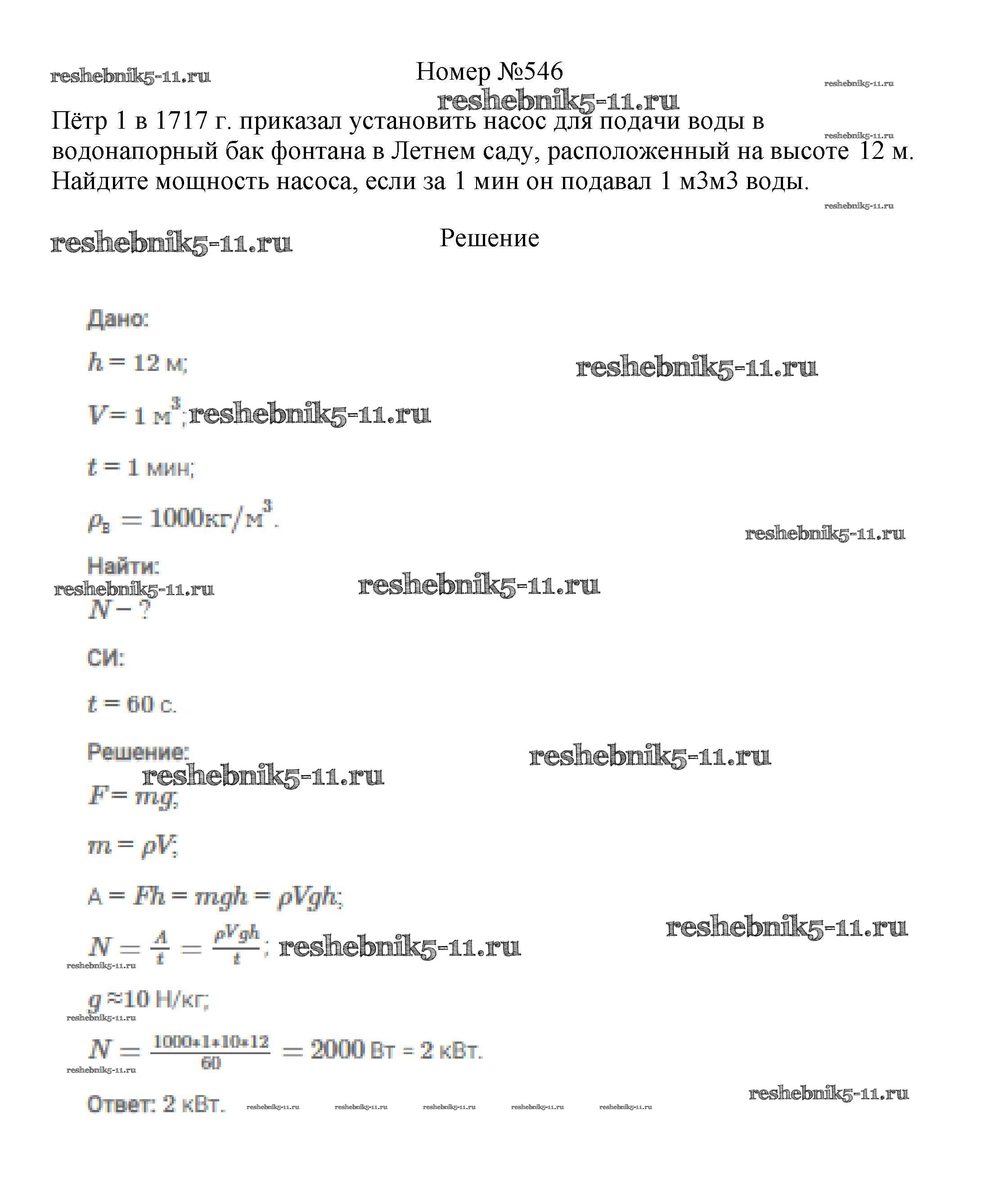 Готовая домашняя работа с ответами по Физике за 7, 8, 9 класс Марон, Позойский Сборник вопросов и задач Вертикаль Дрофа 2013 ФГОС - 7 класс 546