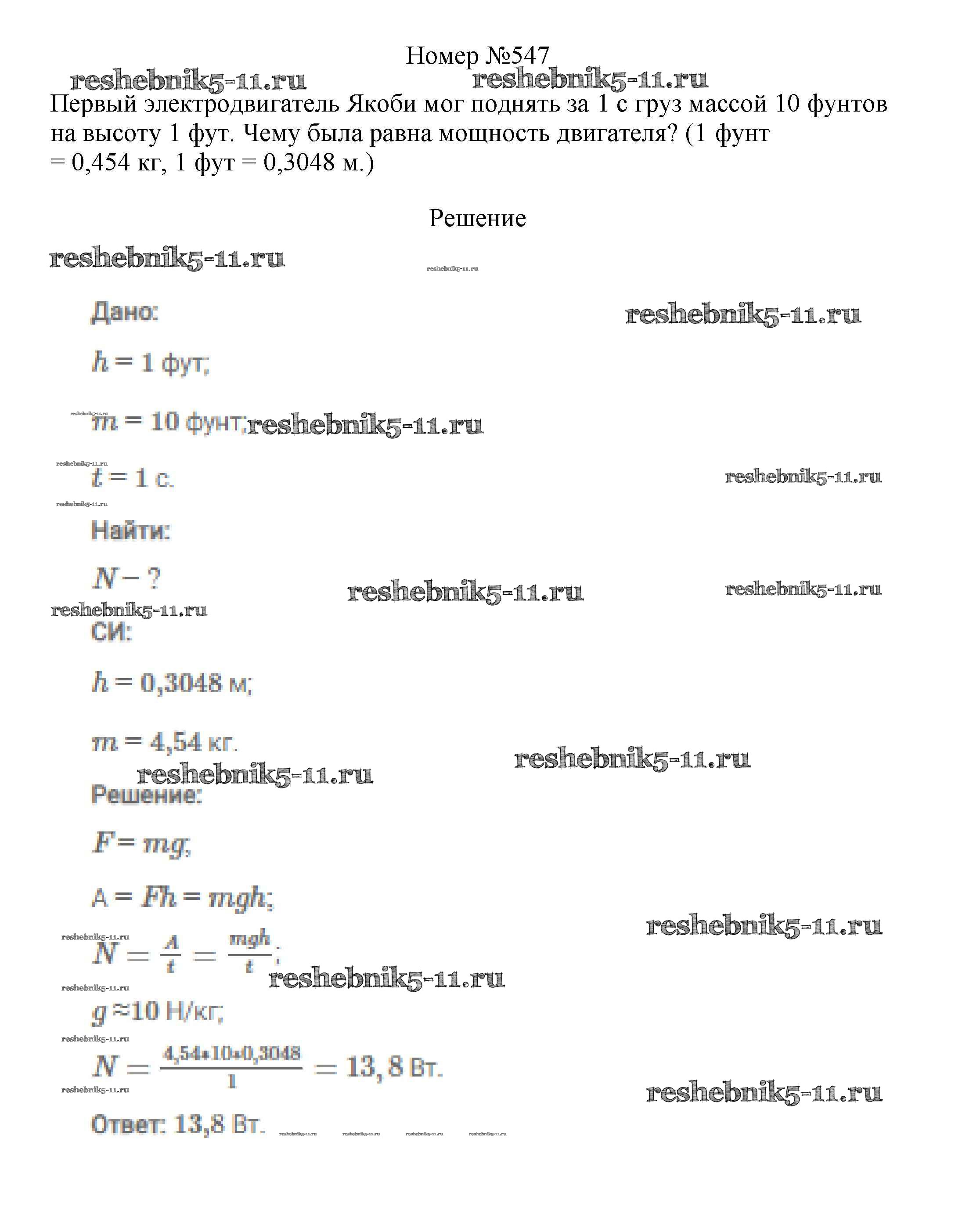 Готовая домашняя работа с ответами по Физике за 7, 8, 9 класс Марон, Позойский Сборник вопросов и задач Вертикаль Дрофа 2013 ФГОС - 7 класс 547