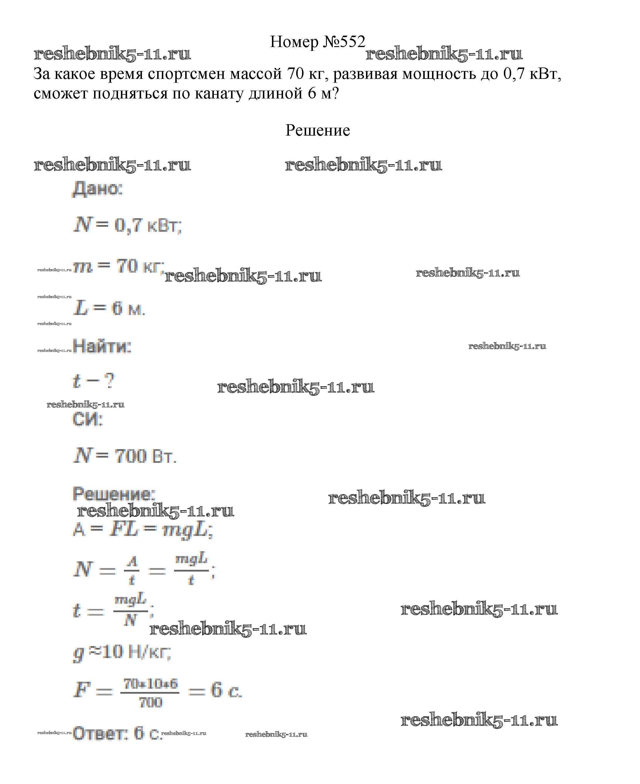 Готовая домашняя работа с ответами по Физике за 7, 8, 9 класс Марон, Позойский Сборник вопросов и задач Вертикаль Дрофа 2013 ФГОС - 7 класс 552