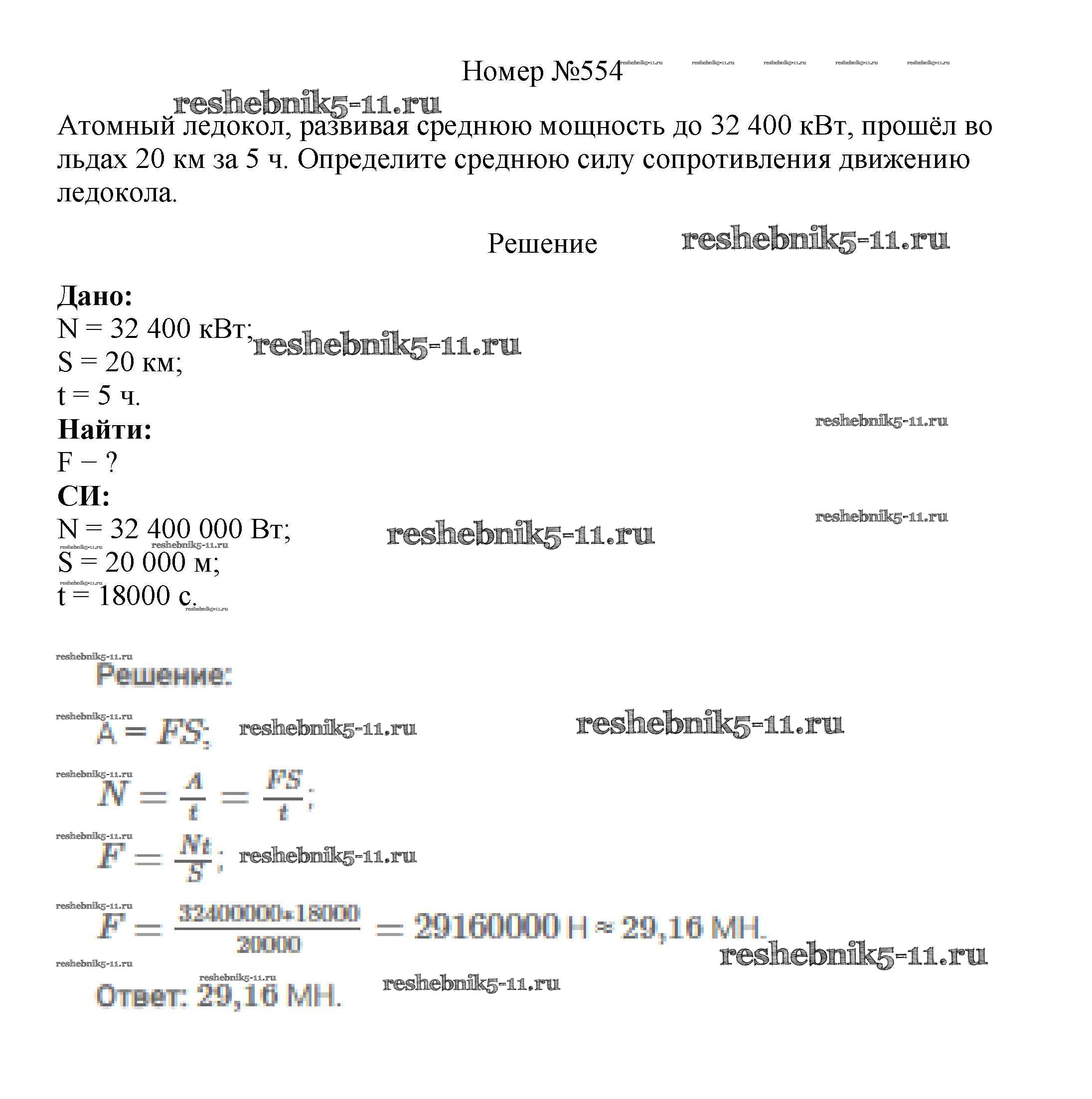 Готовая домашняя работа с ответами по Физике за 7, 8, 9 класс Марон, Позойский Сборник вопросов и задач Вертикаль Дрофа 2013 ФГОС - 7 класс 554