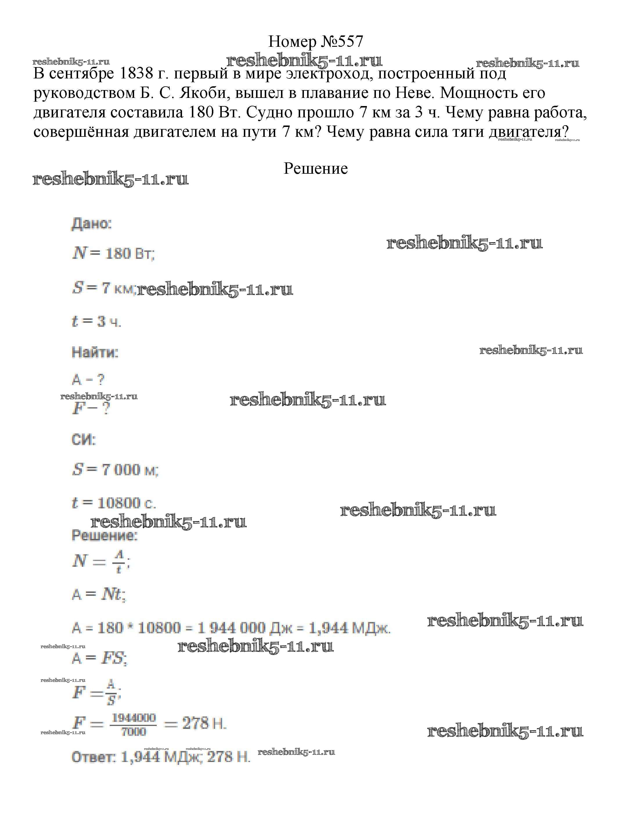 Готовая домашняя работа с ответами по Физике за 7, 8, 9 класс Марон, Позойский Сборник вопросов и задач Вертикаль Дрофа 2013 ФГОС - 7 класс 557