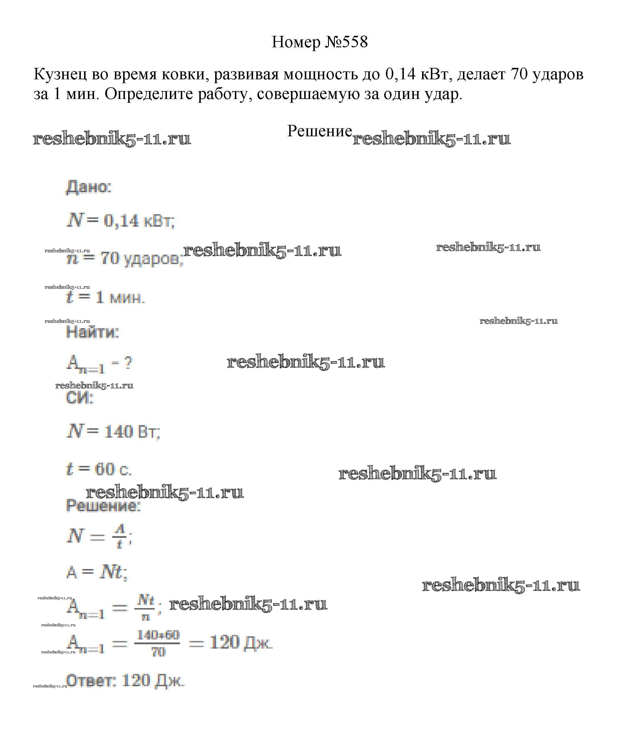 Готовая домашняя работа с ответами по Физике за 7, 8, 9 класс Марон, Позойский Сборник вопросов и задач Вертикаль Дрофа 2013 ФГОС - 7 класс 558