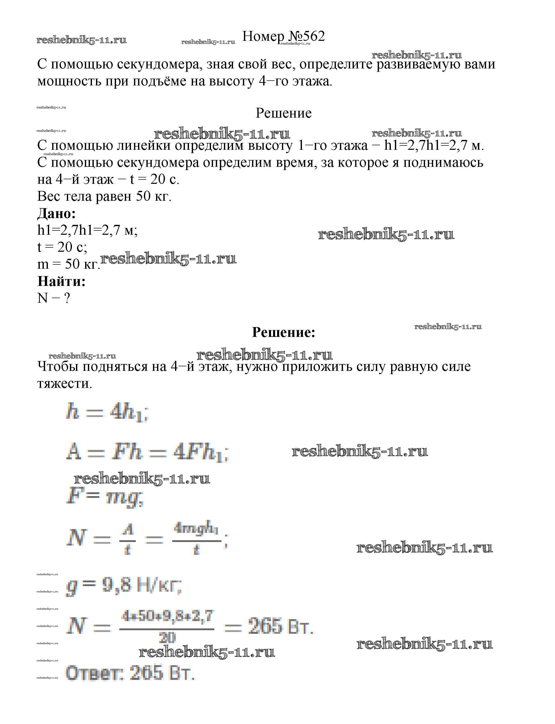 Готовая домашняя работа с ответами по Физике за 7, 8, 9 класс Марон, Позойский Сборник вопросов и задач Вертикаль Дрофа 2013 ФГОС - 7 класс 562