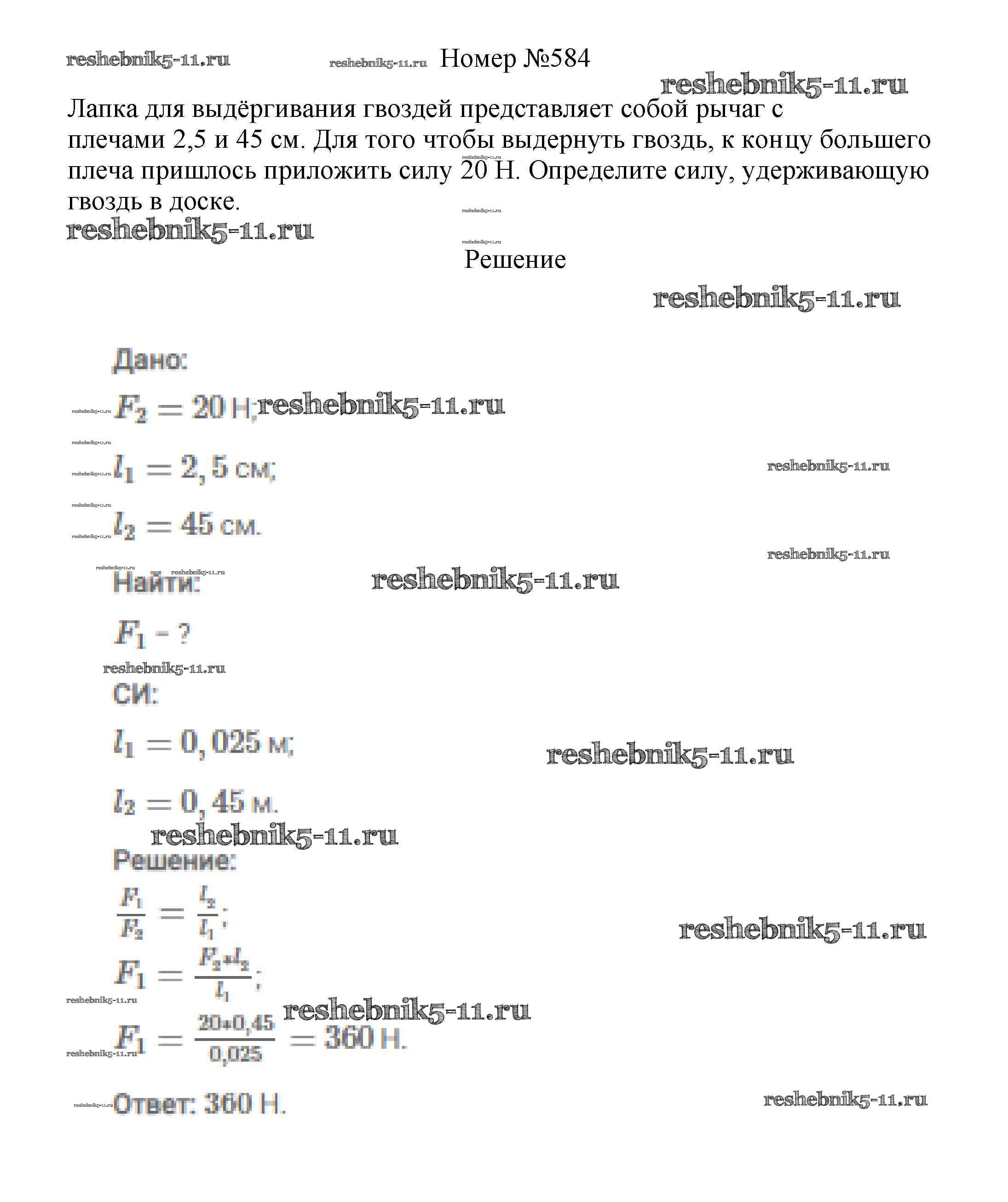 Готовая домашняя работа с ответами по Физике за 7, 8, 9 класс Марон, Позойский Сборник вопросов и задач Вертикаль Дрофа 2013 ФГОС - 7 класс 584