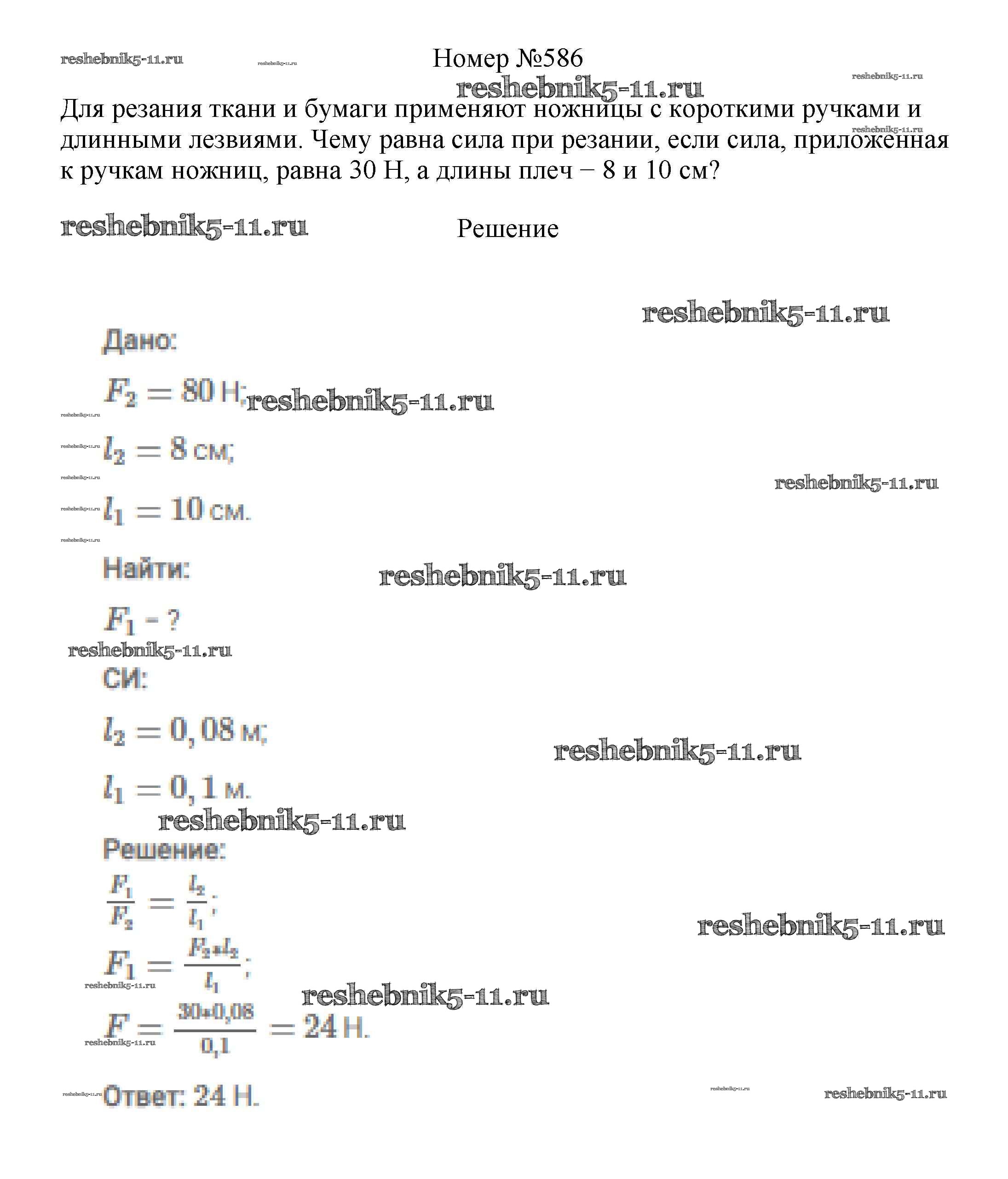 Готовая домашняя работа с ответами по Физике за 7, 8, 9 класс Марон, Позойский Сборник вопросов и задач Вертикаль Дрофа 2013 ФГОС - 7 класс 586