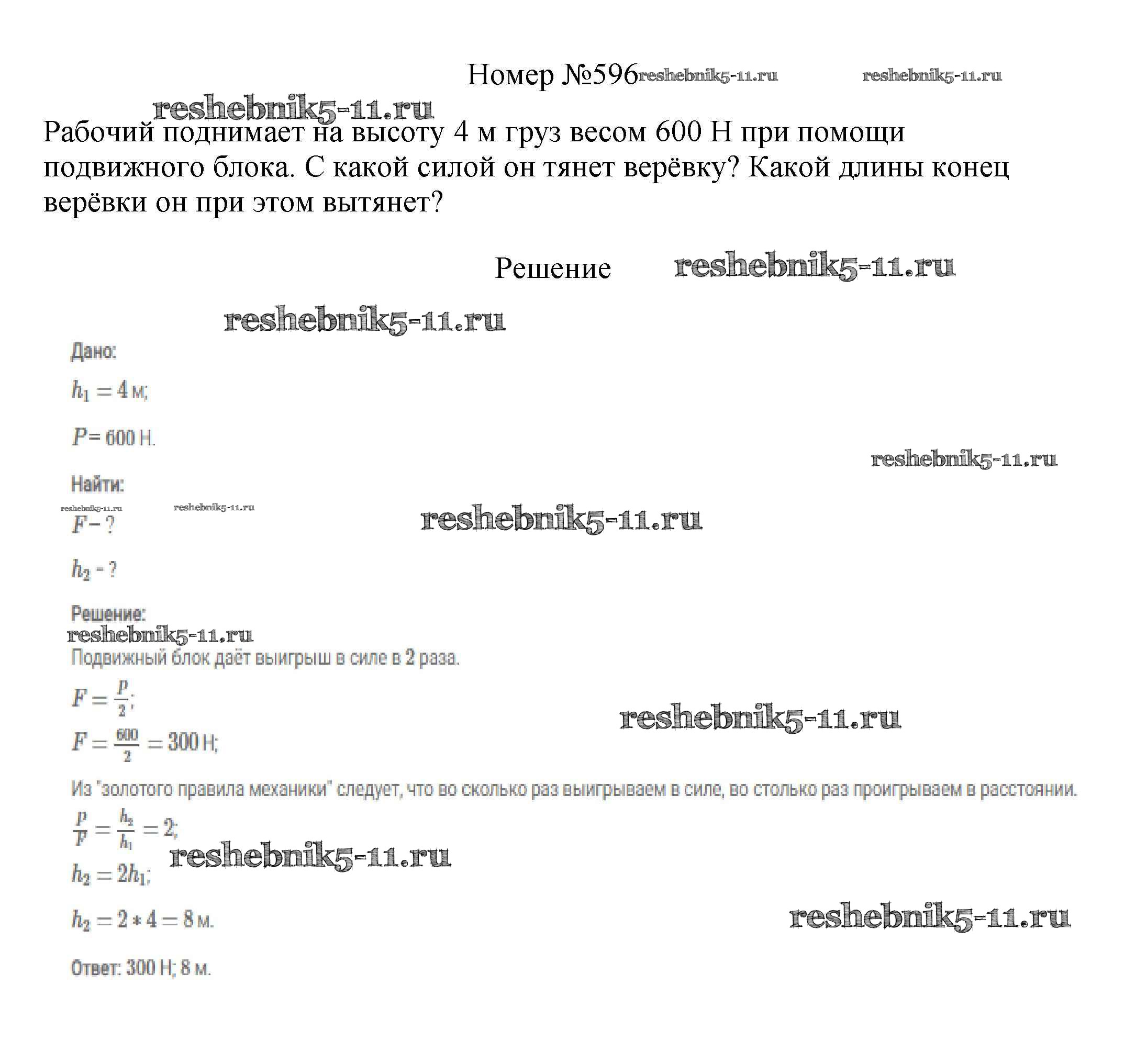 Готовая домашняя работа с ответами по Физике за 7, 8, 9 класс Марон, Позойский Сборник вопросов и задач Вертикаль Дрофа 2013 ФГОС - 7 класс 596