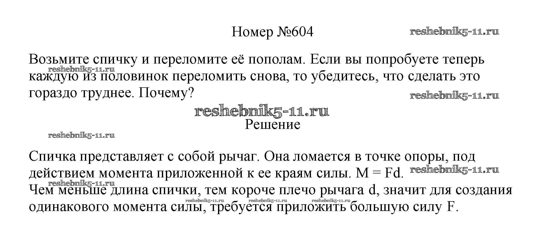 Готовая домашняя работа с ответами по Физике за 7, 8, 9 класс Марон, Позойский Сборник вопросов и задач Вертикаль Дрофа 2013 ФГОС - 7 класс 604