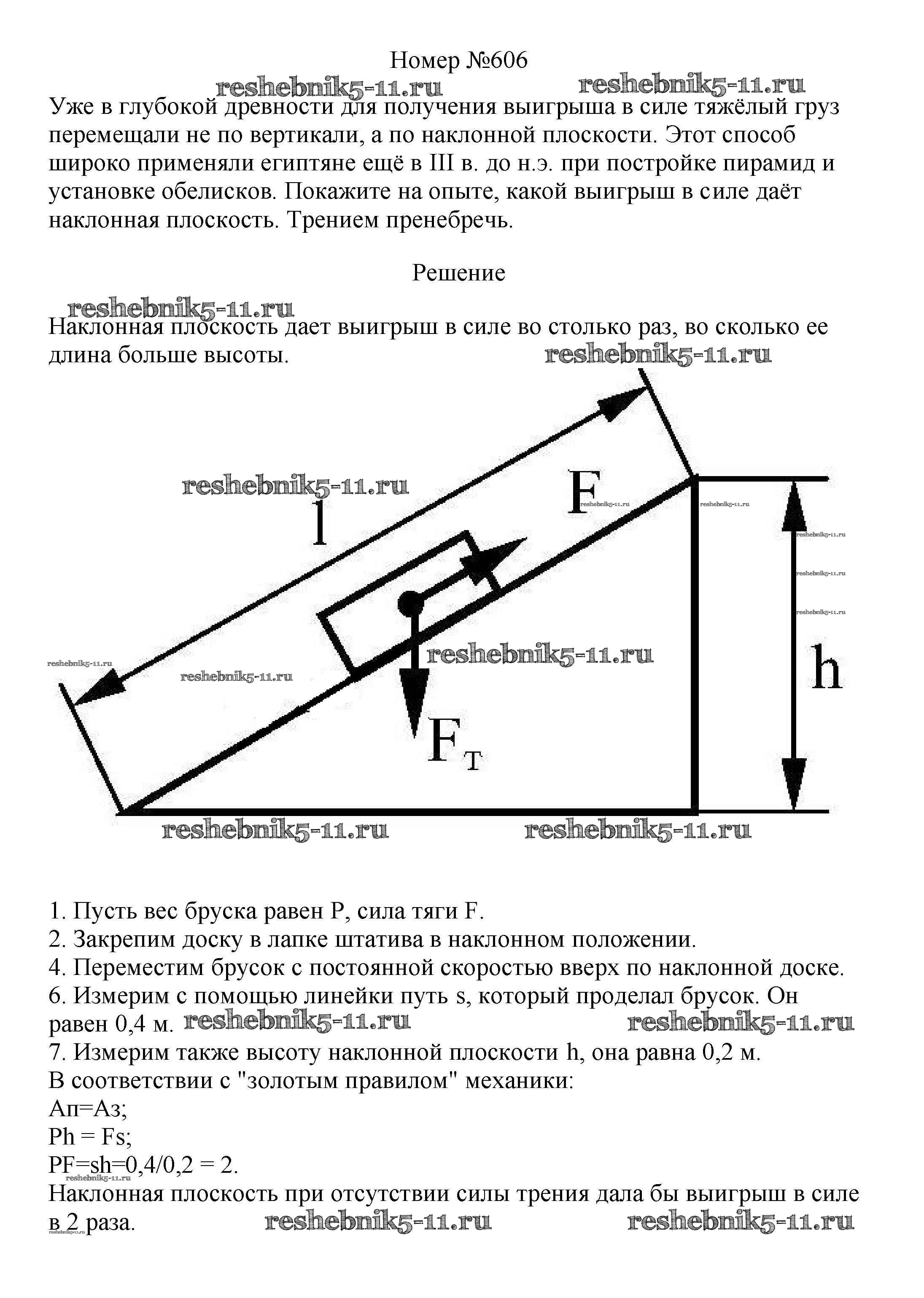 Готовая домашняя работа с ответами по Физике за 7, 8, 9 класс Марон, Позойский Сборник вопросов и задач Вертикаль Дрофа 2013 ФГОС - 7 класс 606