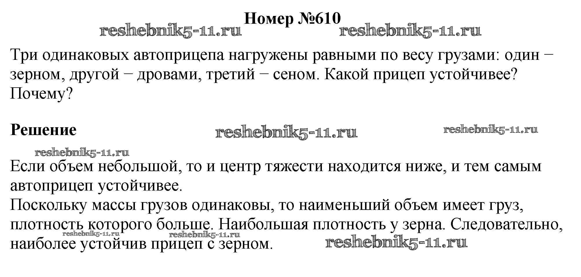 Готовая домашняя работа с ответами по Физике за 7, 8, 9 класс Марон, Позойский Сборник вопросов и задач Вертикаль Дрофа 2013 ФГОС - 7 класс 610