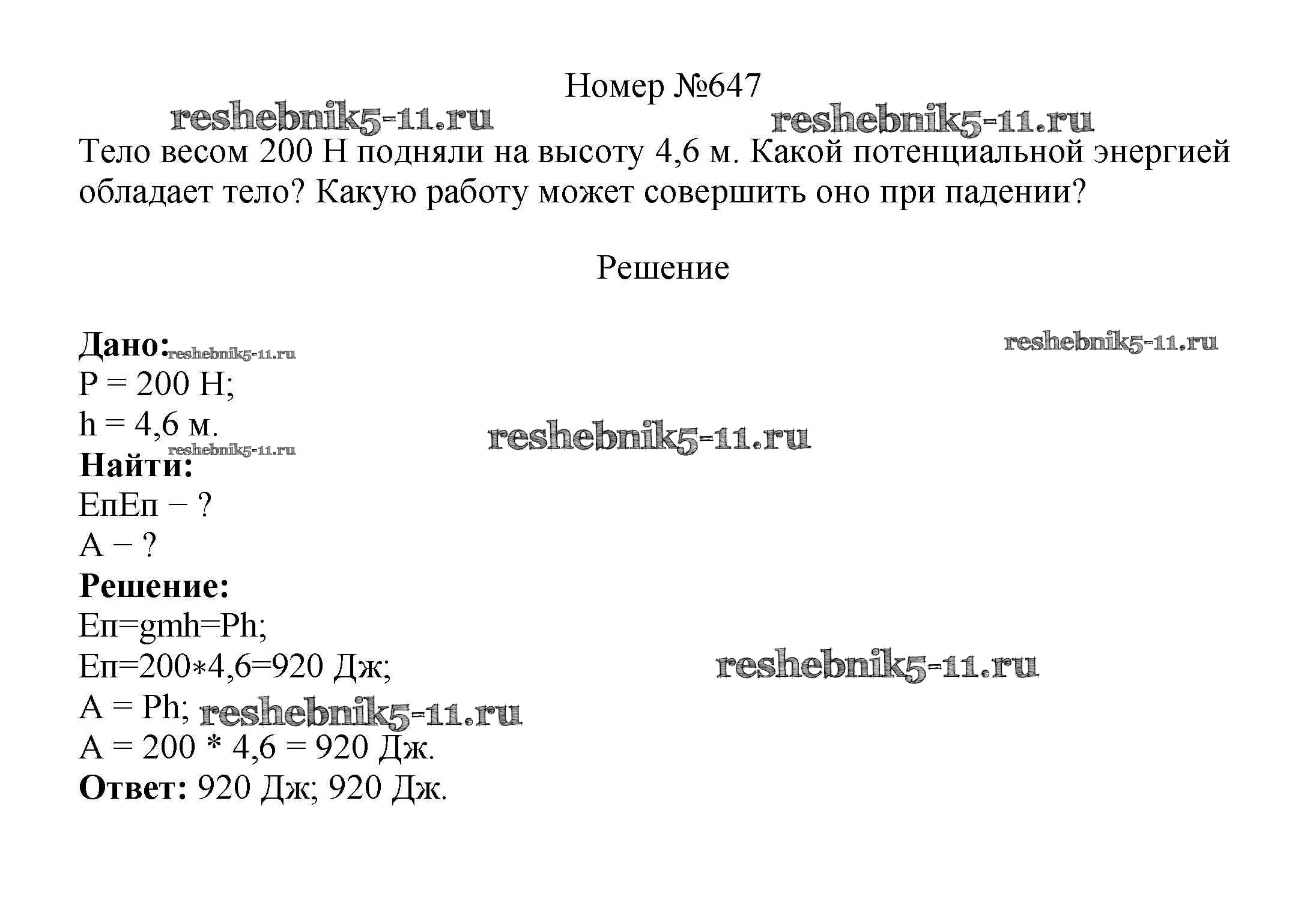 Готовая домашняя работа с ответами по Физике за 7, 8, 9 класс Марон, Позойский Сборник вопросов и задач Вертикаль Дрофа 2013 ФГОС - 7 класс 647