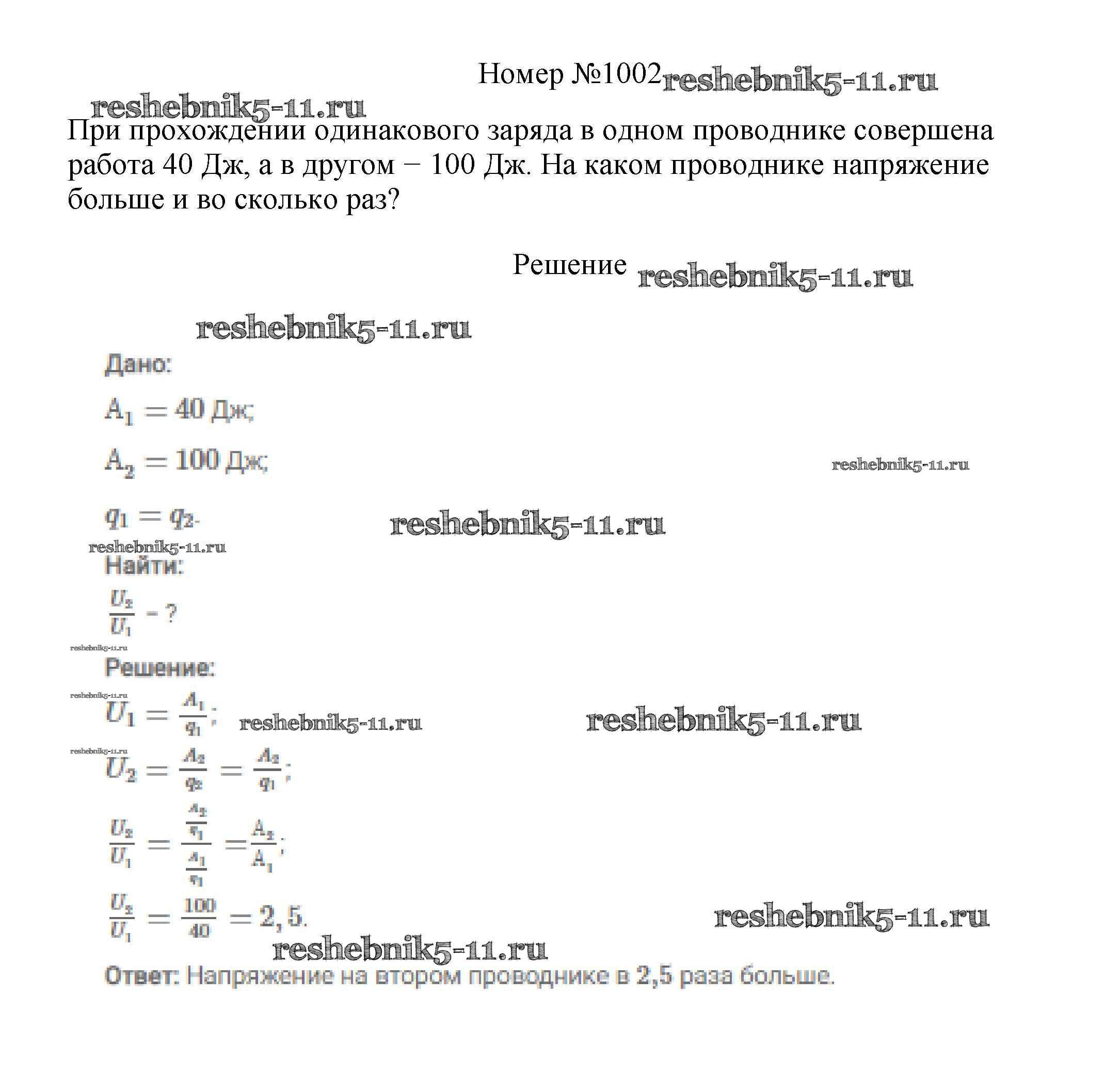 Готовая домашняя работа с ответами по Физике за 7, 8, 9 класс Марон, Позойский Сборник вопросов и задач Вертикаль Дрофа 2013 ФГОС - 8 класс 1002