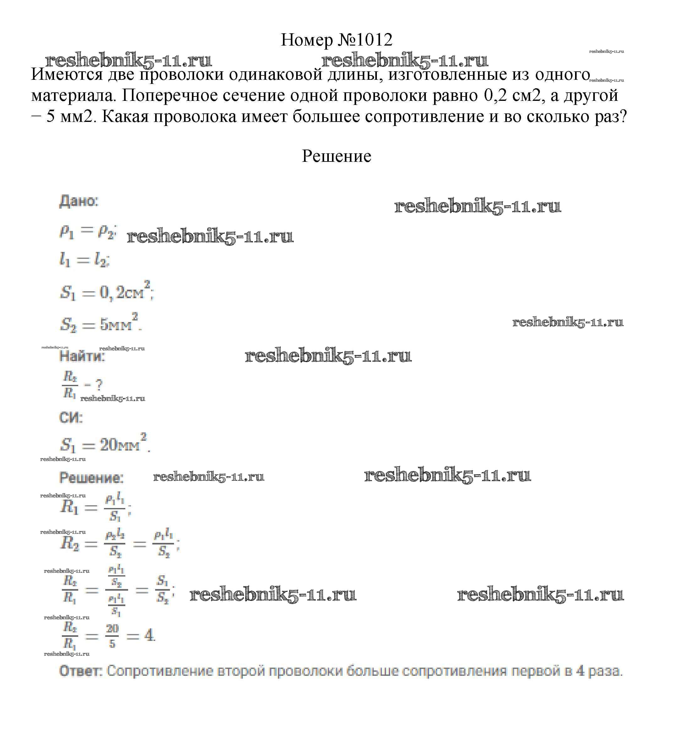 Готовая домашняя работа с ответами по Физике за 7, 8, 9 класс Марон, Позойский Сборник вопросов и задач Вертикаль Дрофа 2013 ФГОС - 8 класс 1012