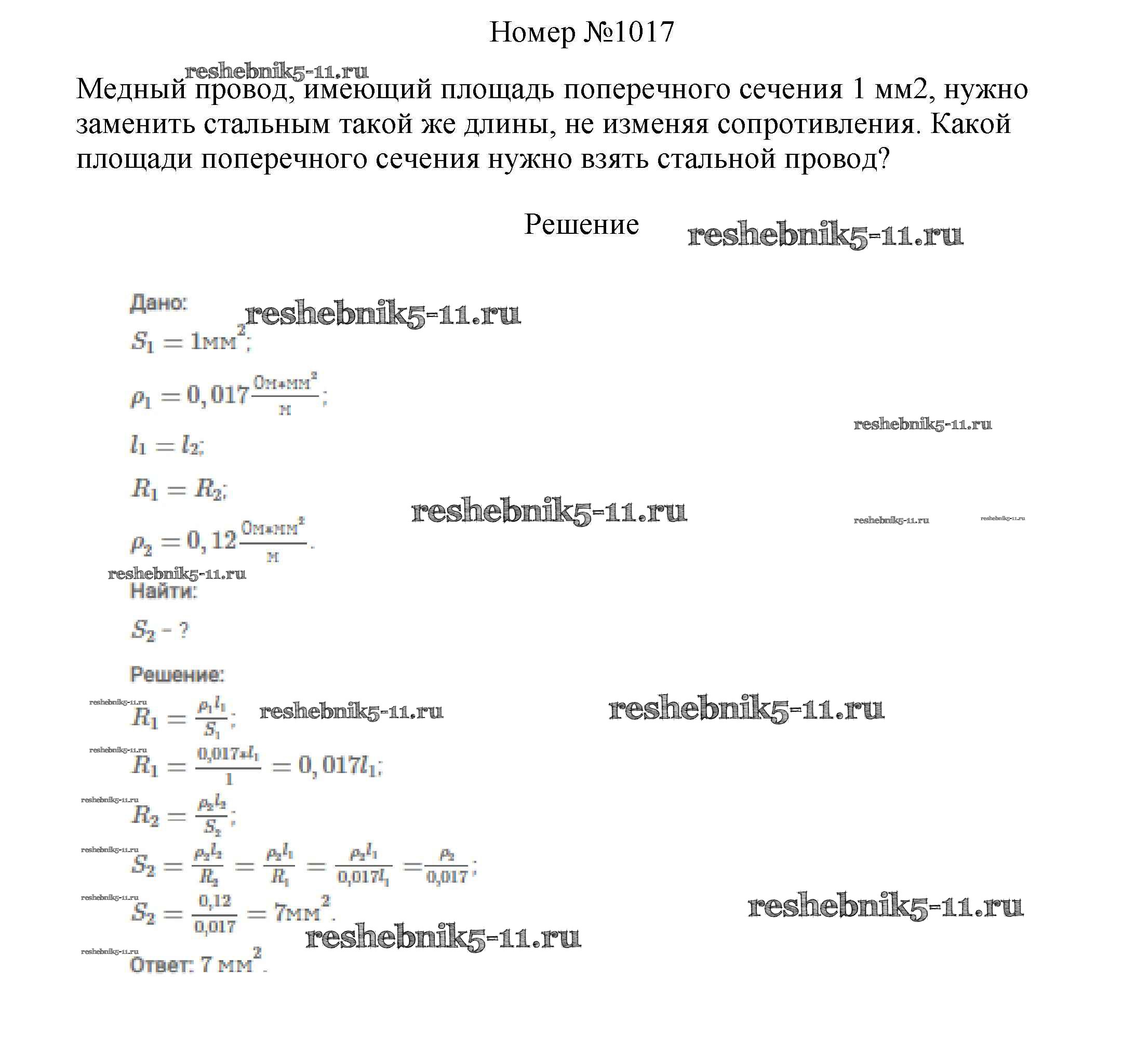Готовая домашняя работа с ответами по Физике за 7, 8, 9 класс Марон, Позойский Сборник вопросов и задач Вертикаль Дрофа 2013 ФГОС - 8 класс 1017