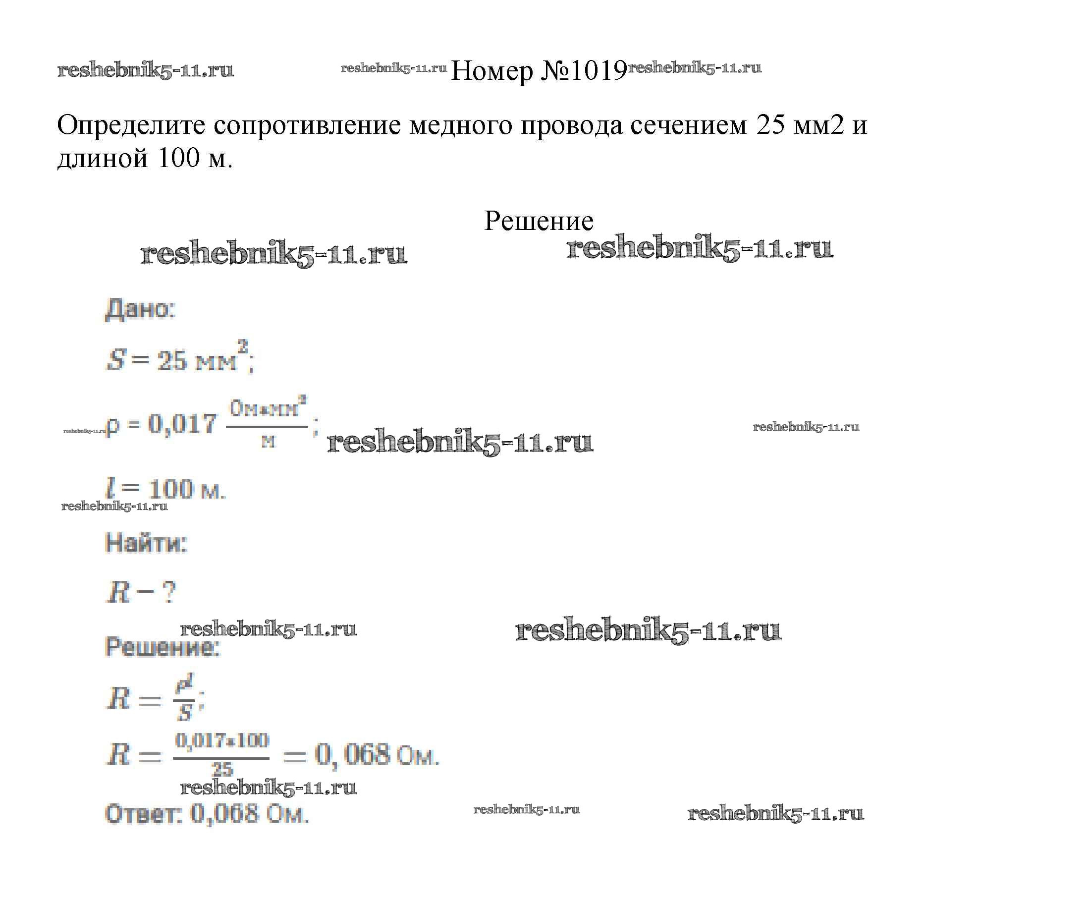 Готовая домашняя работа с ответами по Физике за 7, 8, 9 класс Марон, Позойский Сборник вопросов и задач Вертикаль Дрофа 2013 ФГОС - 8 класс 1019