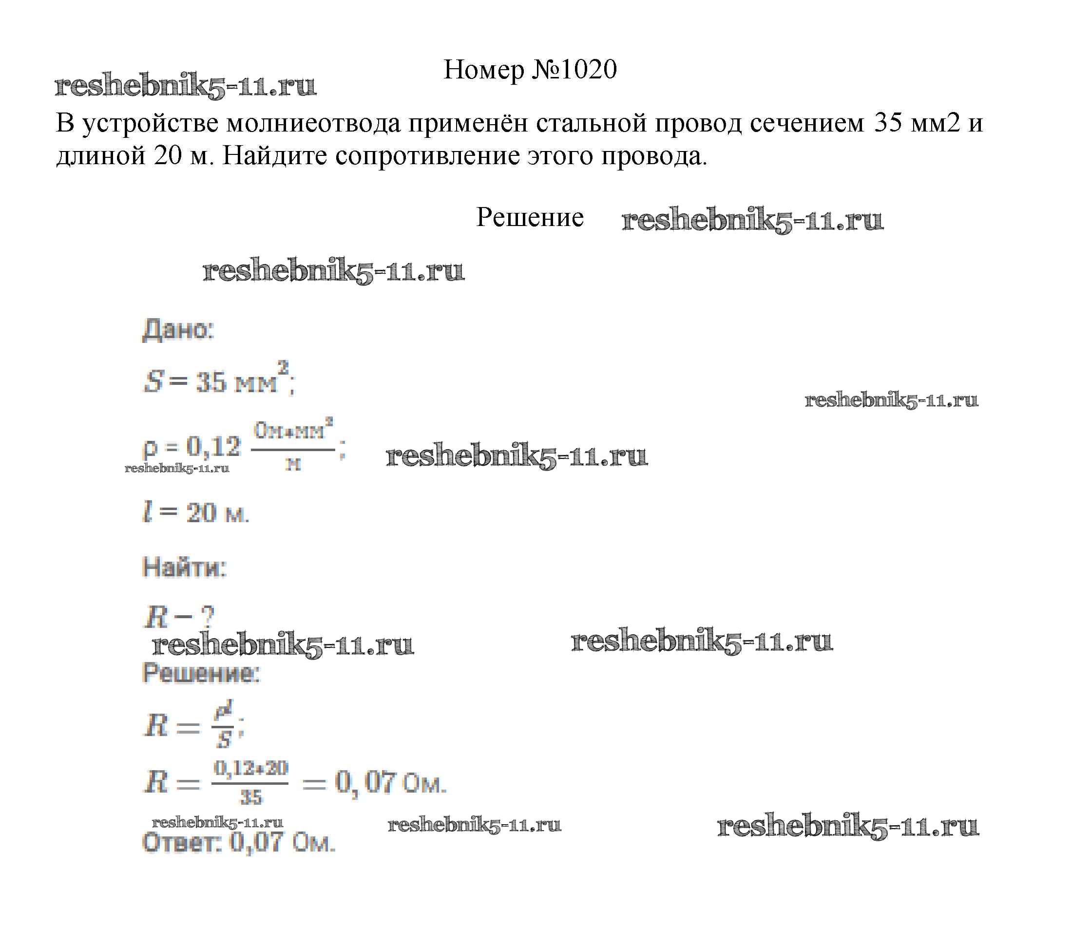Готовая домашняя работа с ответами по Физике за 7, 8, 9 класс Марон, Позойский Сборник вопросов и задач Вертикаль Дрофа 2013 ФГОС - 8 класс 1020