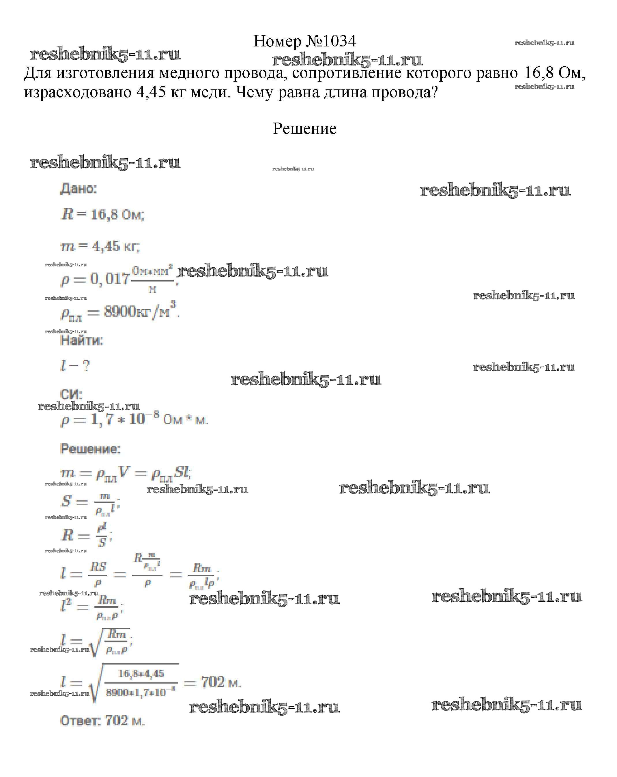 Готовая домашняя работа с ответами по Физике за 7, 8, 9 класс Марон, Позойский Сборник вопросов и задач Вертикаль Дрофа 2013 ФГОС - 8 класс 1034