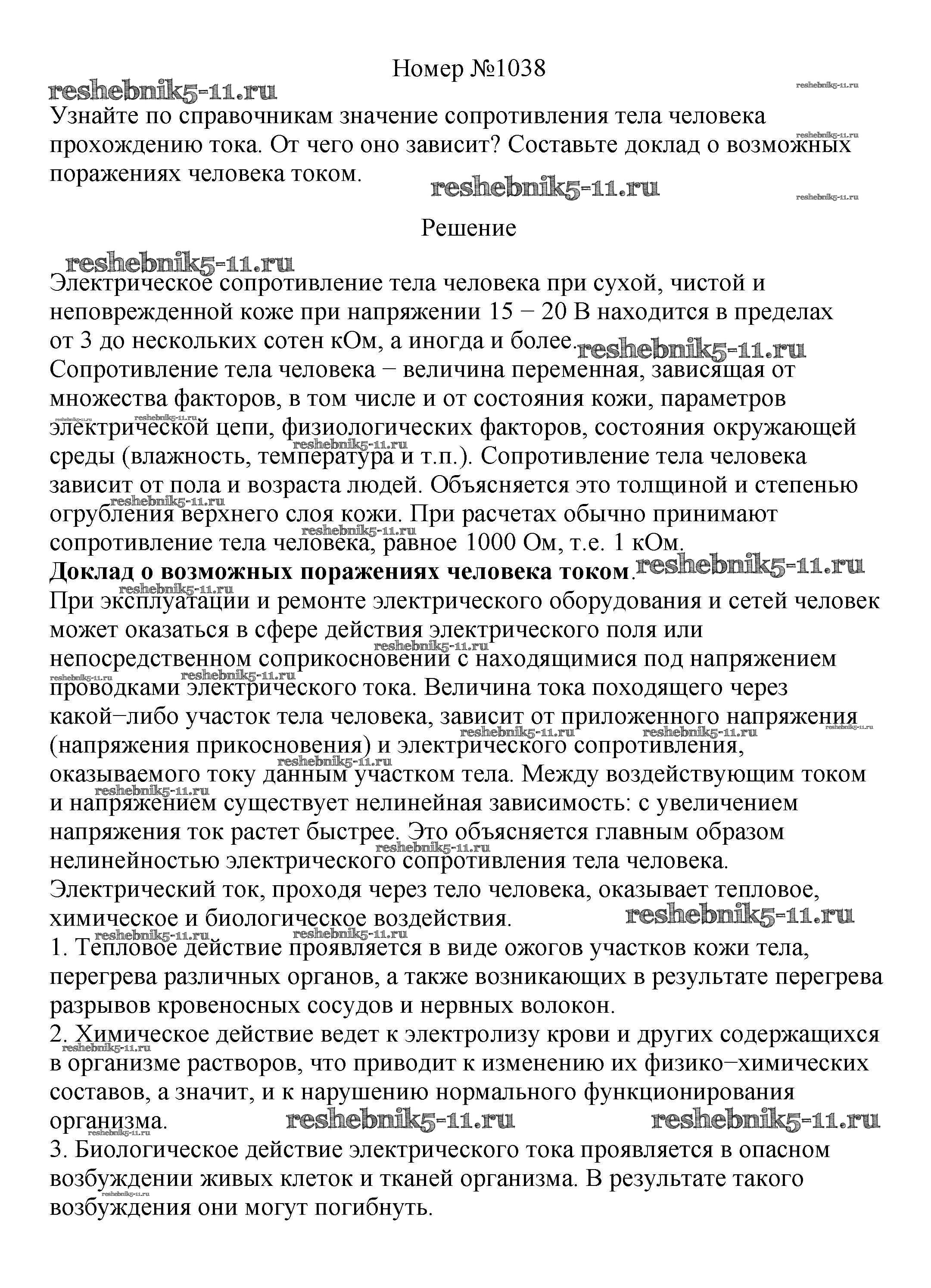 Готовая домашняя работа с ответами по Физике за 7, 8, 9 класс Марон, Позойский Сборник вопросов и задач Вертикаль Дрофа 2013 ФГОС - 8 класс 1038