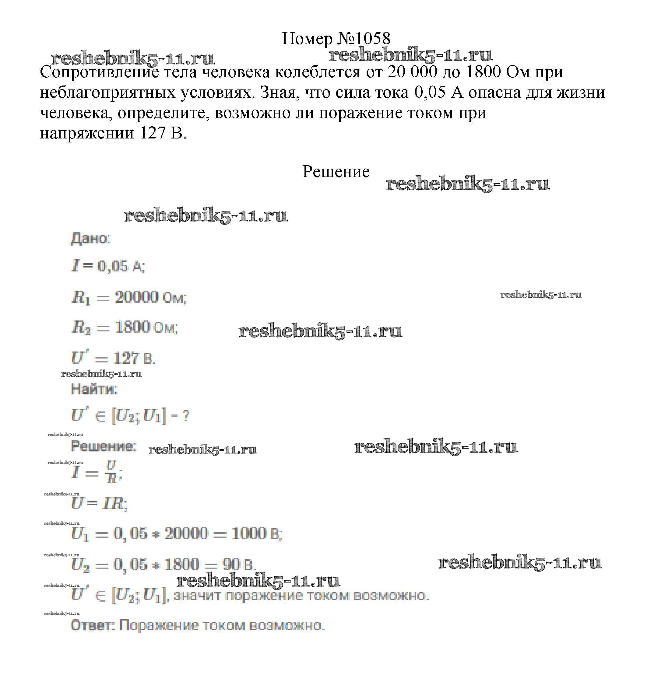 Готовая домашняя работа с ответами по Физике за 7, 8, 9 класс Марон, Позойский Сборник вопросов и задач Вертикаль Дрофа 2013 ФГОС - 8 класс 1058