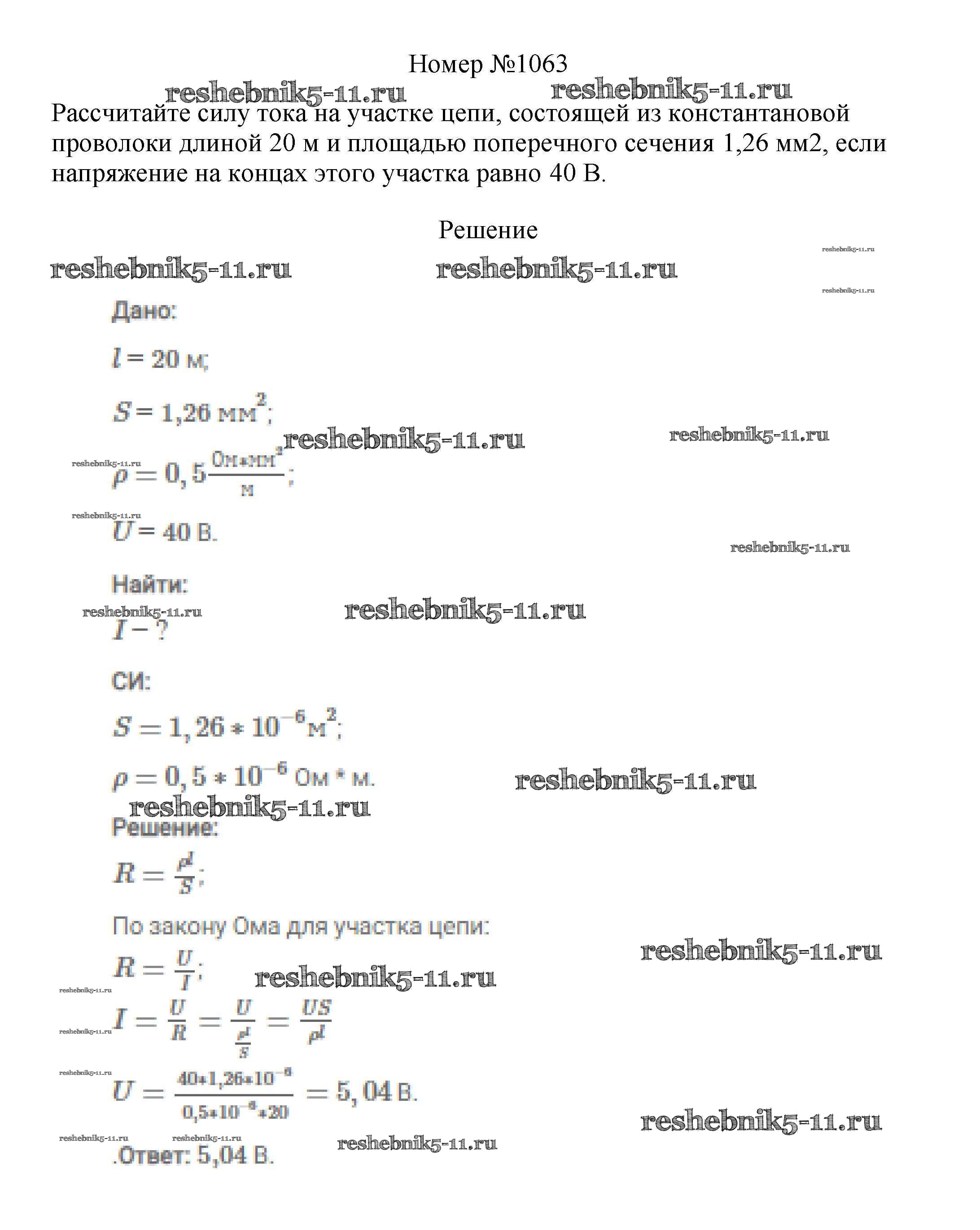 Готовая домашняя работа с ответами по Физике за 7, 8, 9 класс Марон, Позойский Сборник вопросов и задач Вертикаль Дрофа 2013 ФГОС - 8 класс 1063