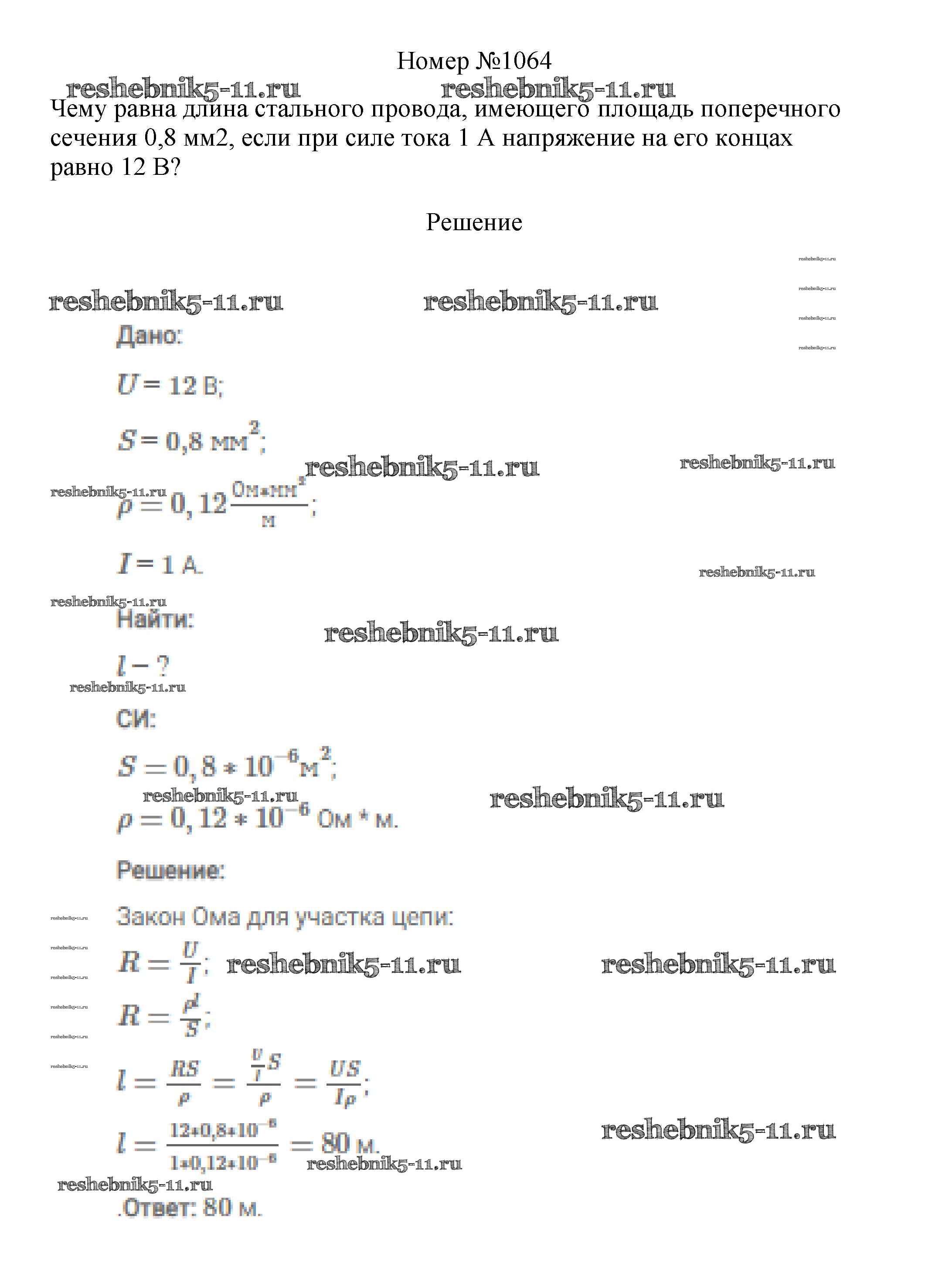 Готовая домашняя работа с ответами по Физике за 7, 8, 9 класс Марон, Позойский Сборник вопросов и задач Вертикаль Дрофа 2013 ФГОС - 8 класс 1064
