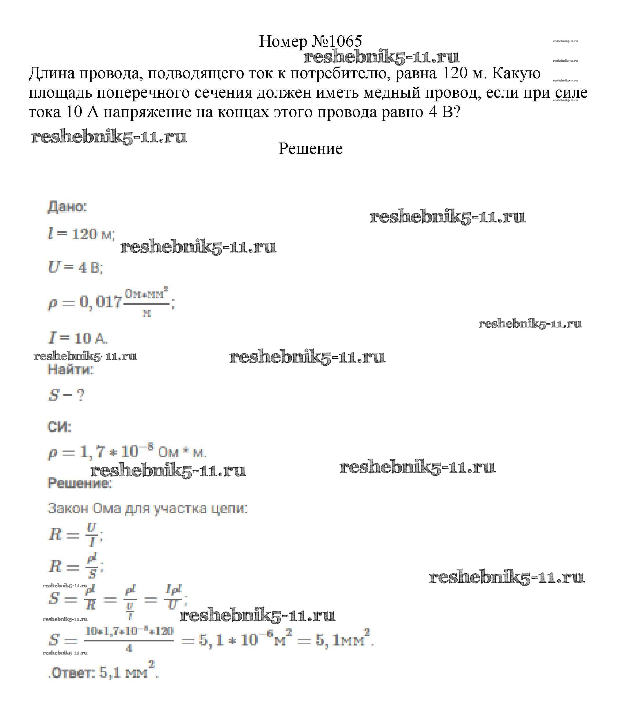 Готовая домашняя работа с ответами по Физике за 7, 8, 9 класс Марон, Позойский Сборник вопросов и задач Вертикаль Дрофа 2013 ФГОС - 8 класс 1065