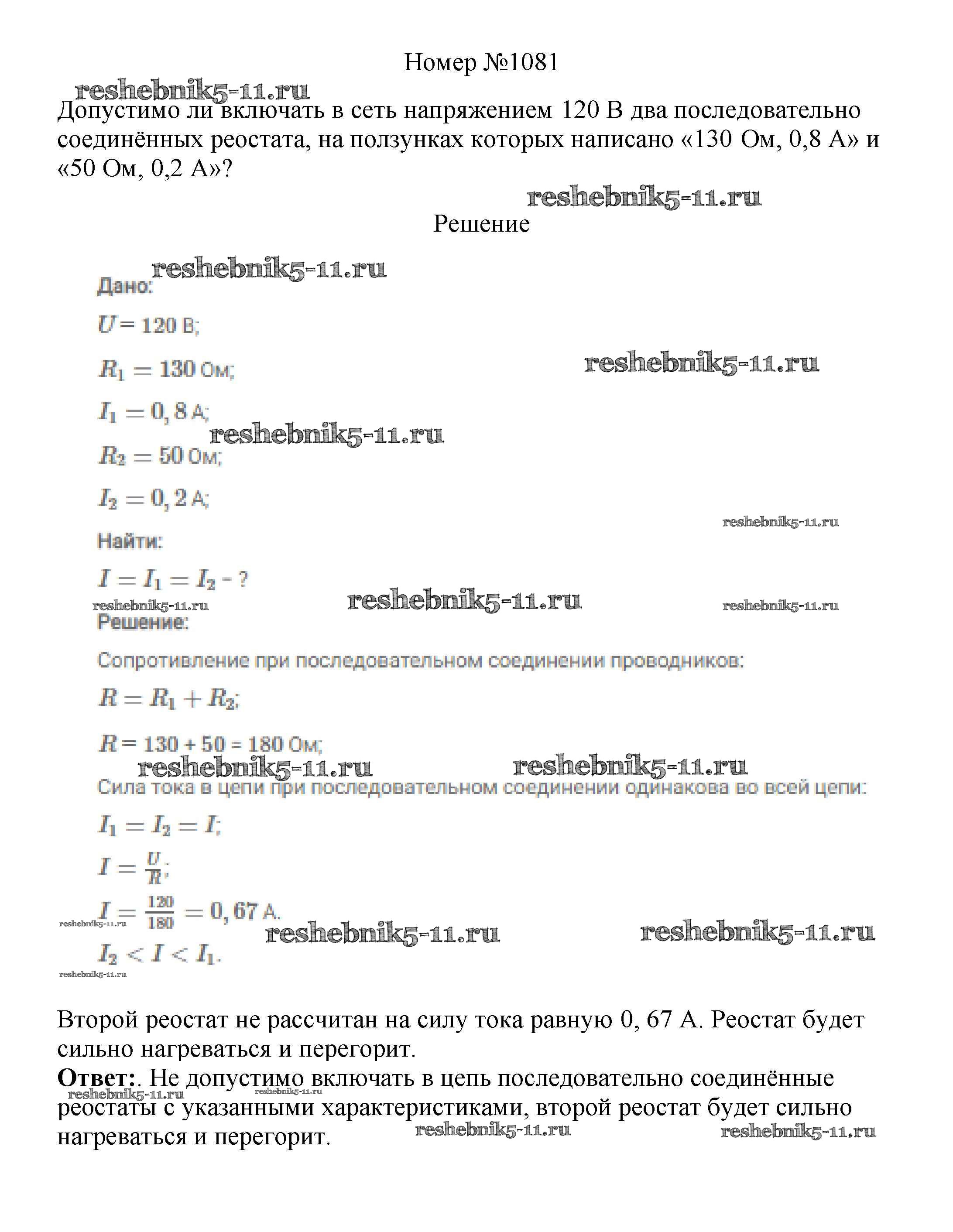 Готовая домашняя работа с ответами по Физике за 7, 8, 9 класс Марон, Позойский Сборник вопросов и задач Вертикаль Дрофа 2013 ФГОС - 8 класс 1081