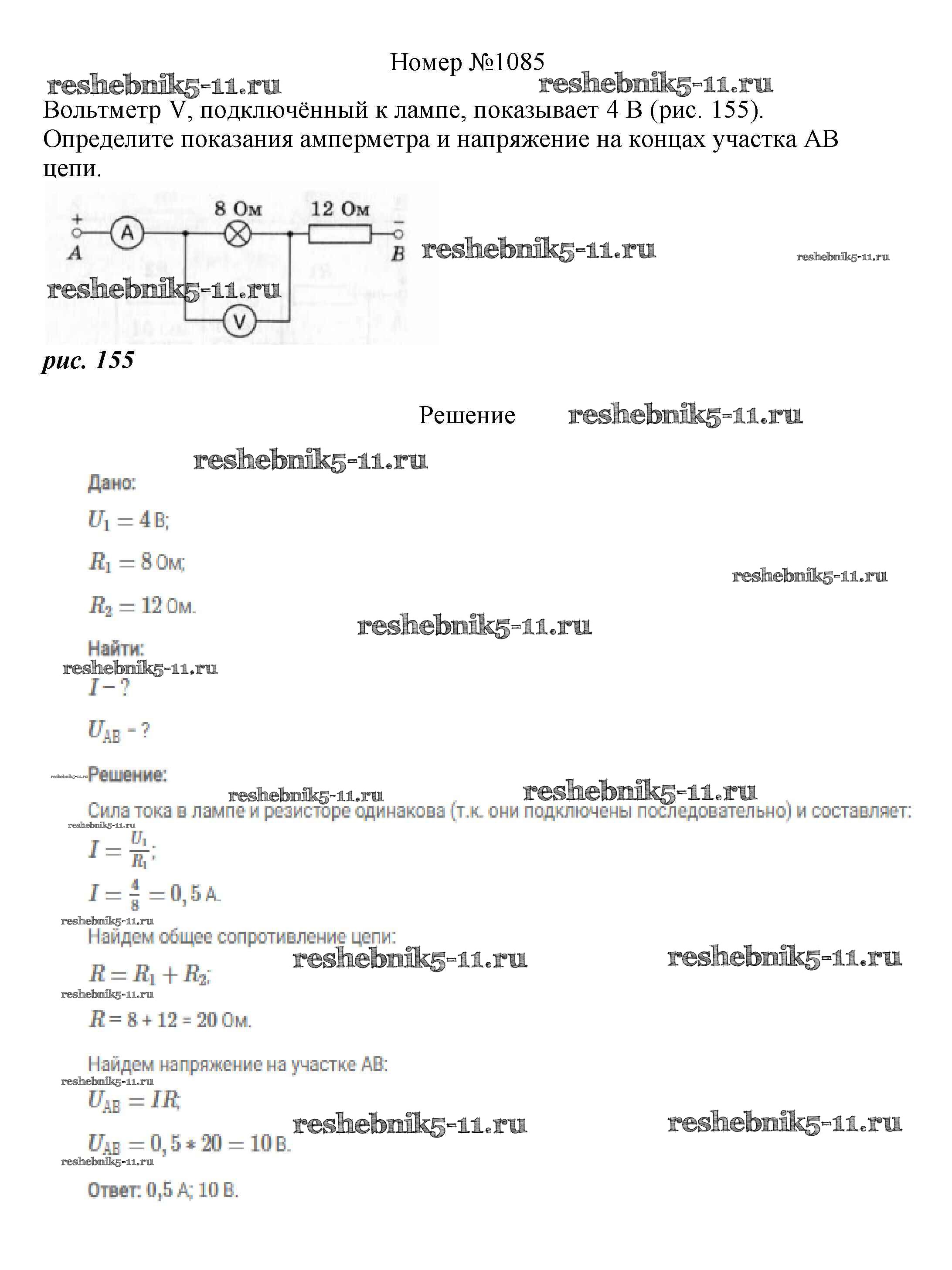 Готовая домашняя работа с ответами по Физике за 7, 8, 9 класс Марон, Позойский Сборник вопросов и задач Вертикаль Дрофа 2013 ФГОС - 8 класс 1085