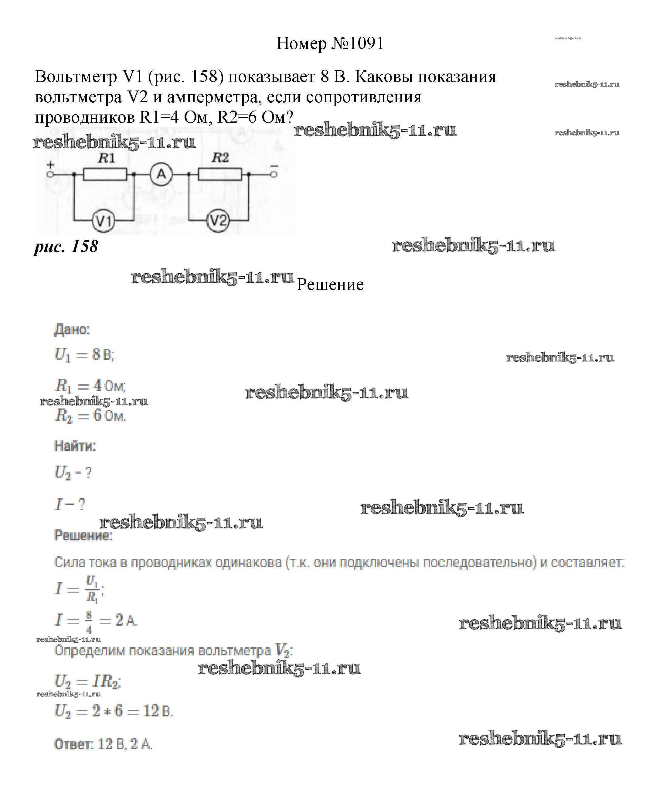 Готовая домашняя работа с ответами по Физике за 7, 8, 9 класс Марон, Позойский Сборник вопросов и задач Вертикаль Дрофа 2013 ФГОС - 8 класс 1091
