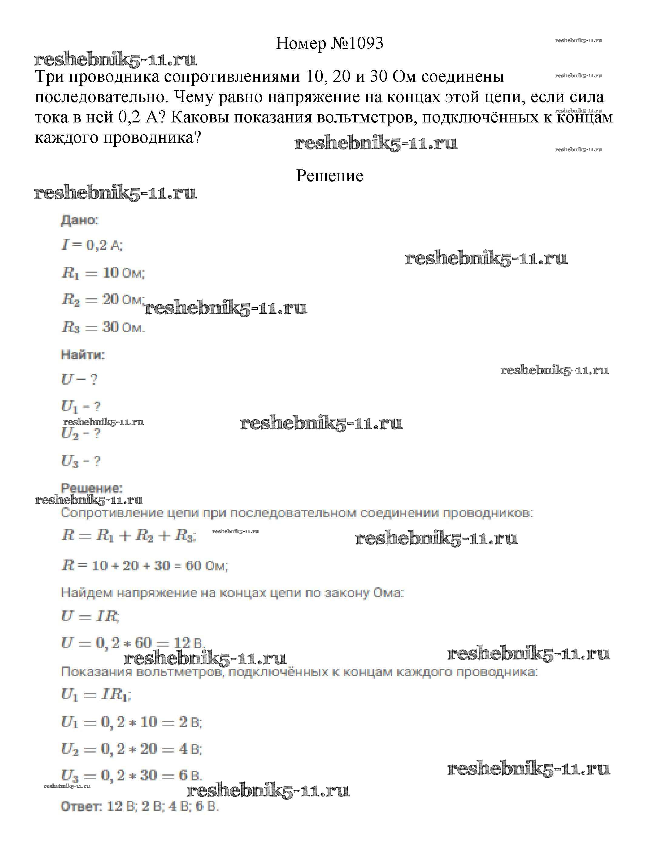 Готовая домашняя работа с ответами по Физике за 7, 8, 9 класс Марон, Позойский Сборник вопросов и задач Вертикаль Дрофа 2013 ФГОС - 8 класс 1093