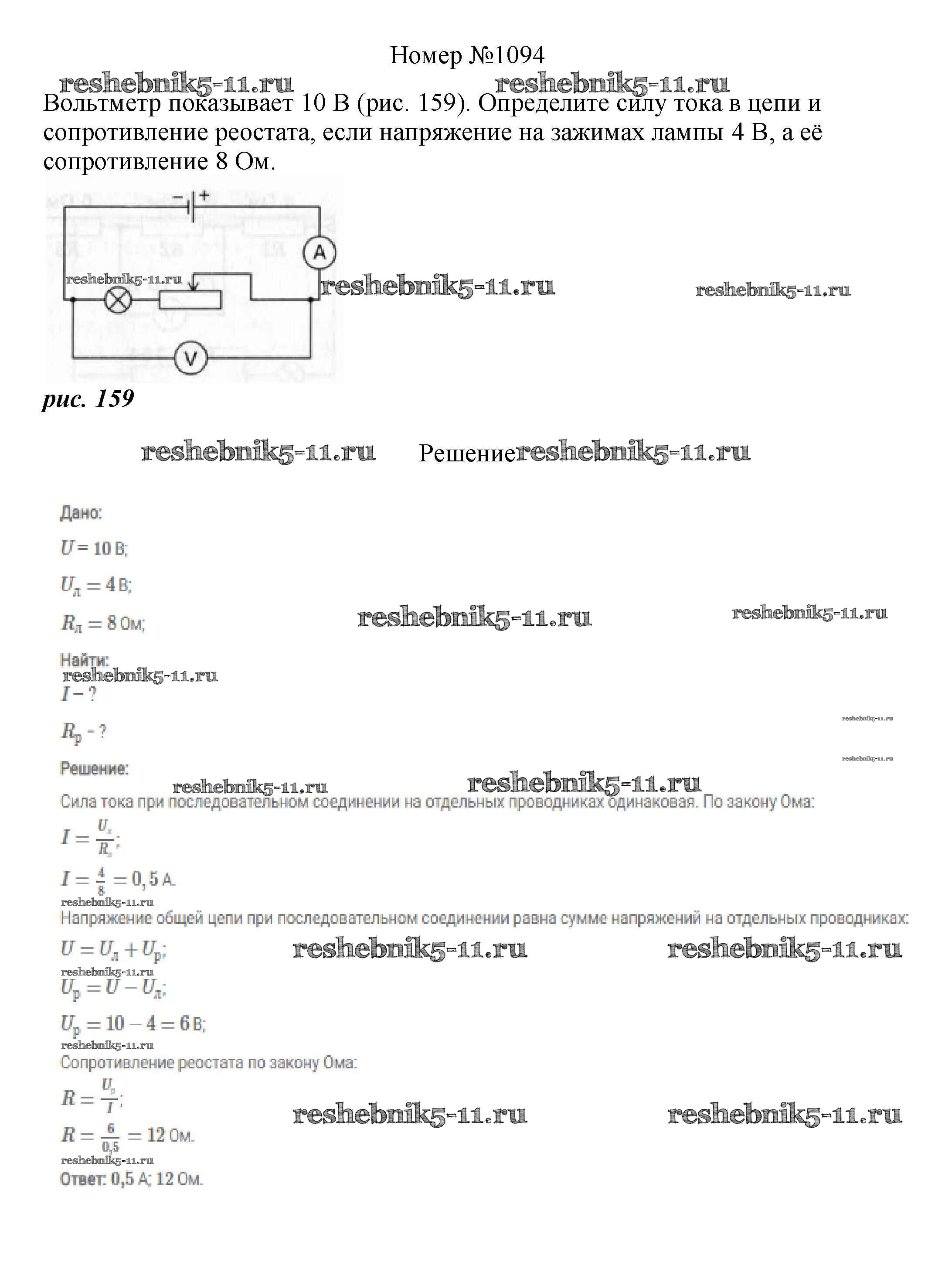 Готовая домашняя работа с ответами по Физике за 7, 8, 9 класс Марон, Позойский Сборник вопросов и задач Вертикаль Дрофа 2013 ФГОС - 8 класс 1094