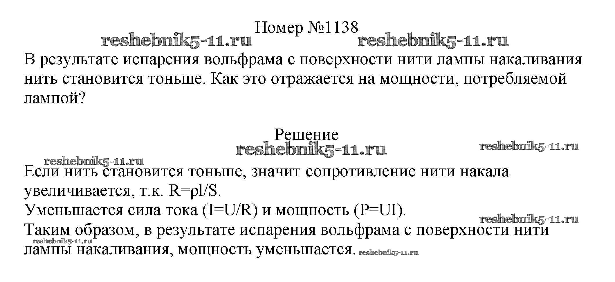 Готовая домашняя работа с ответами по Физике за 7, 8, 9 класс Марон, Позойский Сборник вопросов и задач Вертикаль Дрофа 2013 ФГОС - 8 класс 1138