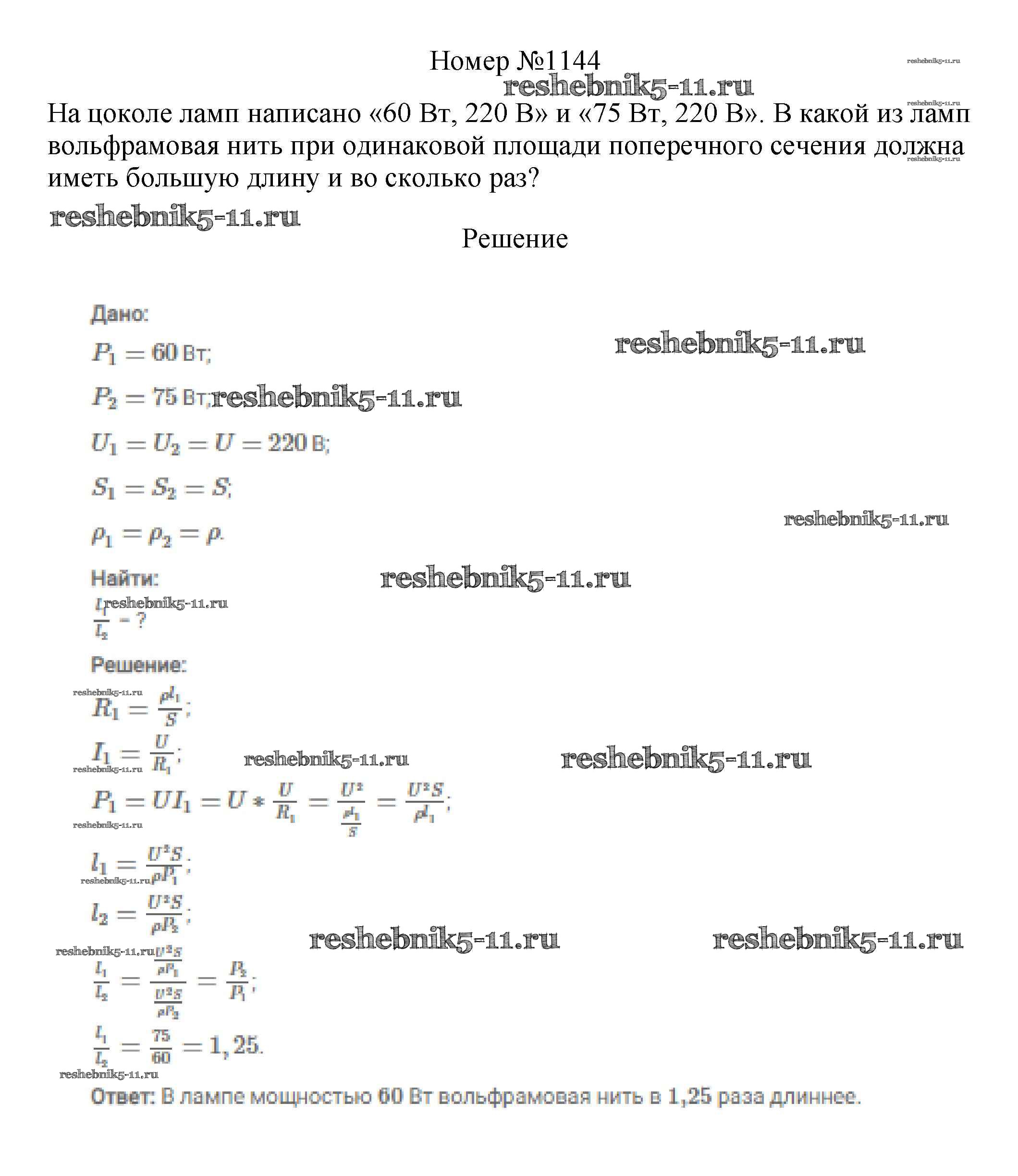 Готовая домашняя работа с ответами по Физике за 7, 8, 9 класс Марон, Позойский Сборник вопросов и задач Вертикаль Дрофа 2013 ФГОС - 8 класс 1144