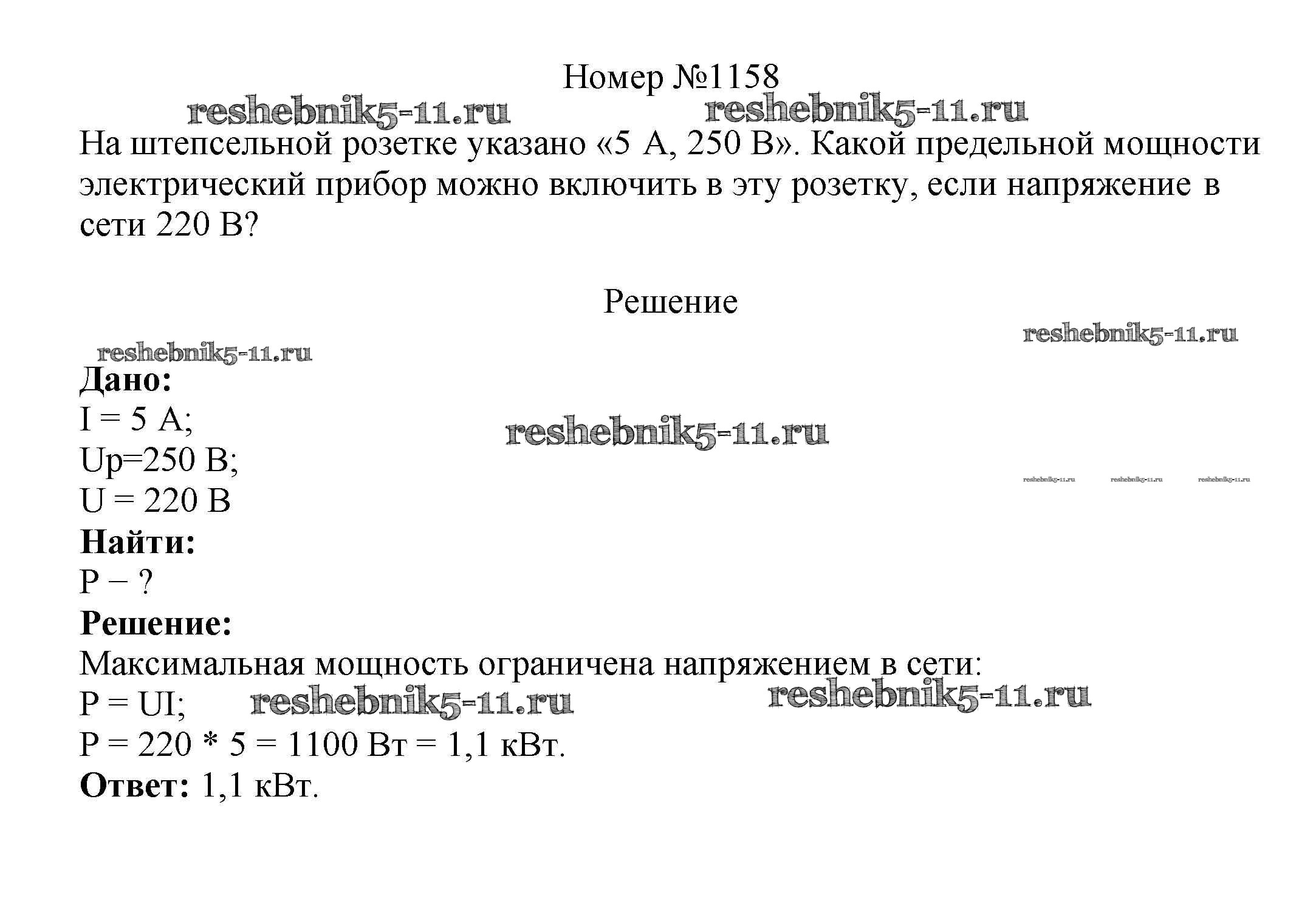 Готовая домашняя работа с ответами по Физике за 7, 8, 9 класс Марон, Позойский Сборник вопросов и задач Вертикаль Дрофа 2013 ФГОС - 8 класс 1158