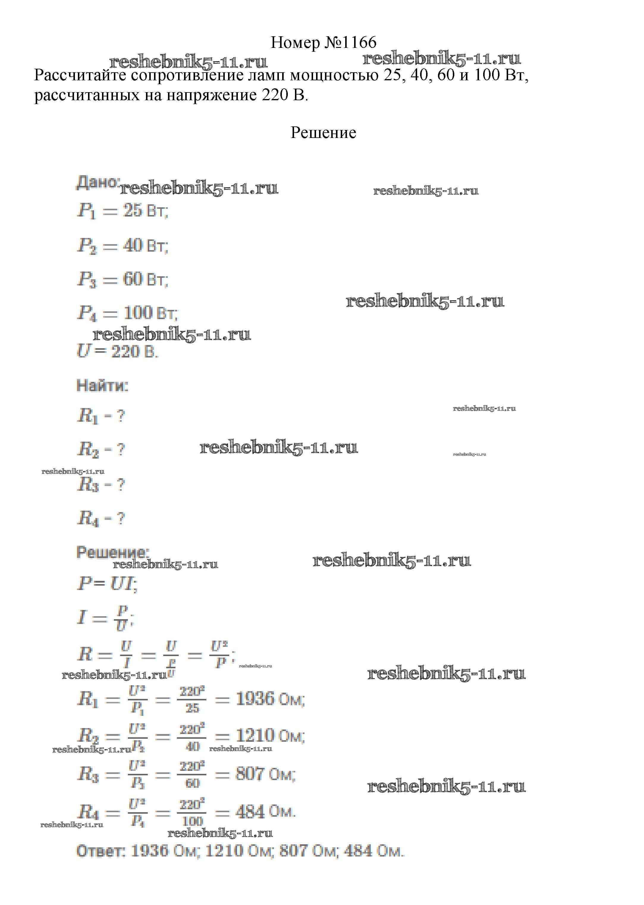 Готовая домашняя работа с ответами по Физике за 7, 8, 9 класс Марон, Позойский Сборник вопросов и задач Вертикаль Дрофа 2013 ФГОС - 8 класс 1166