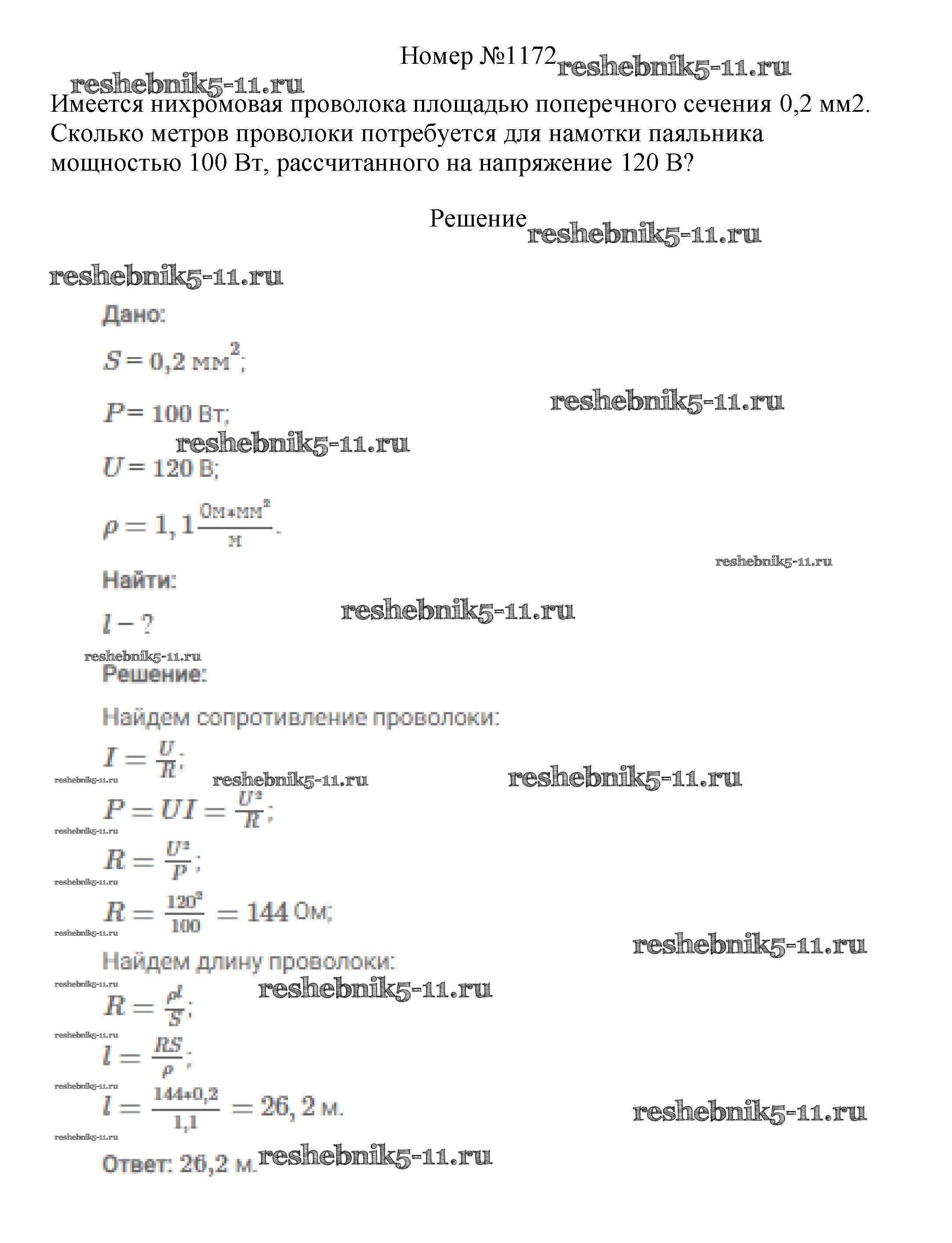 Готовая домашняя работа с ответами по Физике за 7, 8, 9 класс Марон, Позойский Сборник вопросов и задач Вертикаль Дрофа 2013 ФГОС - 8 класс 1172