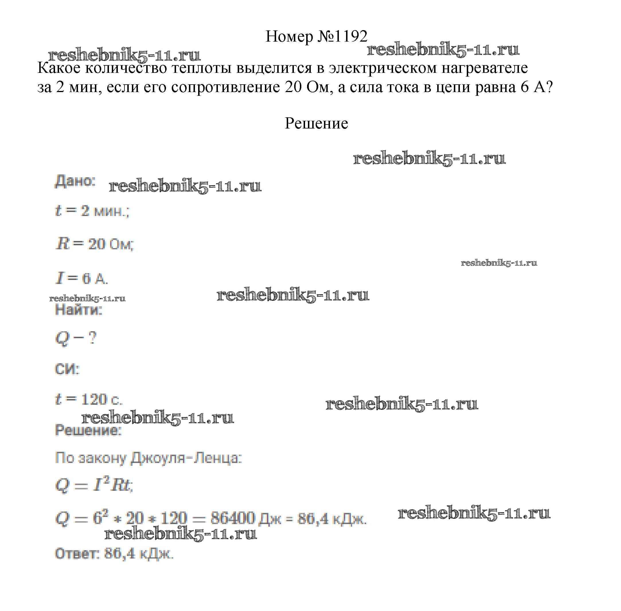 Готовая домашняя работа с ответами по Физике за 7, 8, 9 класс Марон, Позойский Сборник вопросов и задач Вертикаль Дрофа 2013 ФГОС - 8 класс 1192