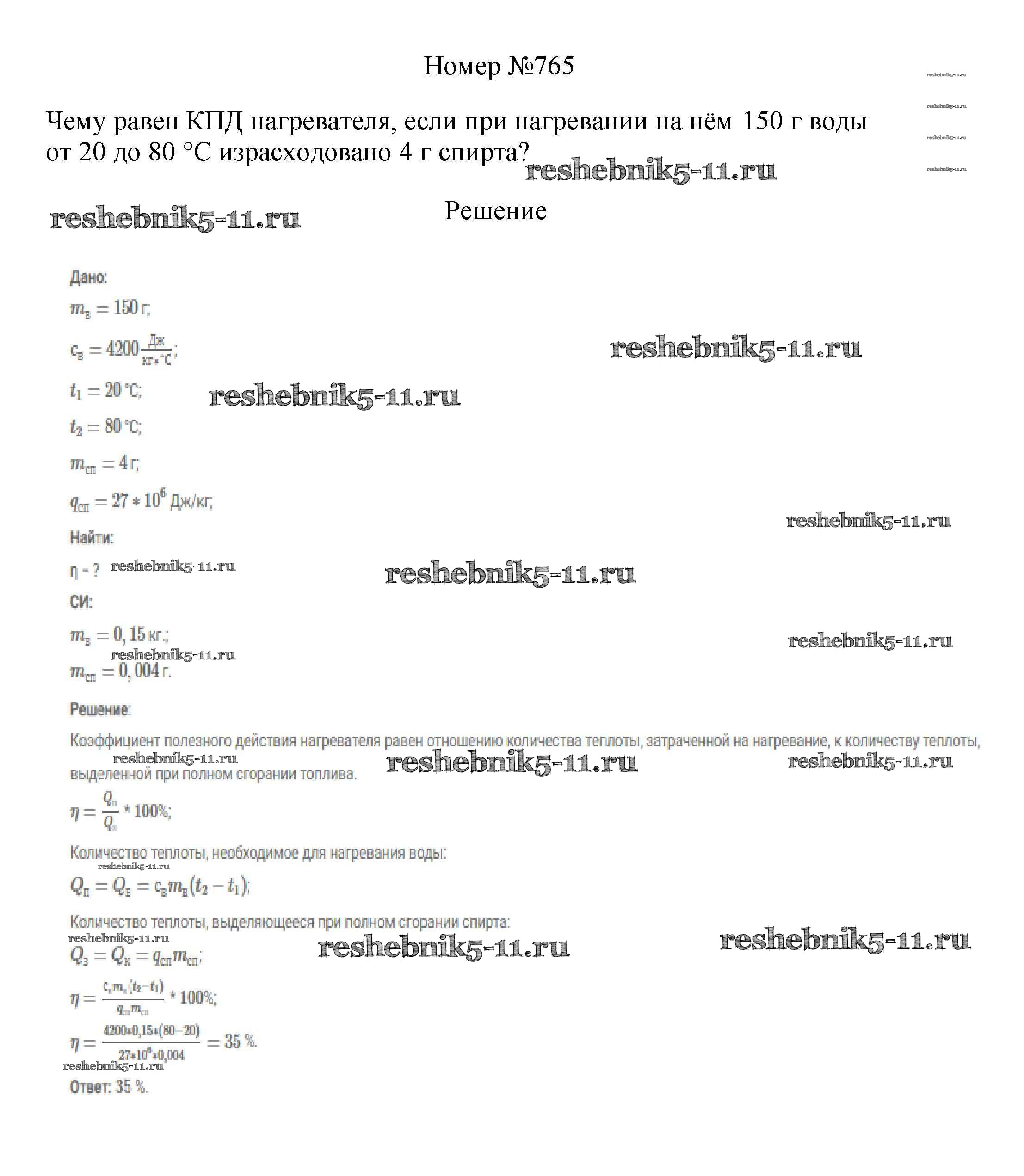 Готовая домашняя работа с ответами по Физике за 7, 8, 9 класс Марон, Позойский Сборник вопросов и задач Вертикаль Дрофа 2013 ФГОС - 8 класс 765