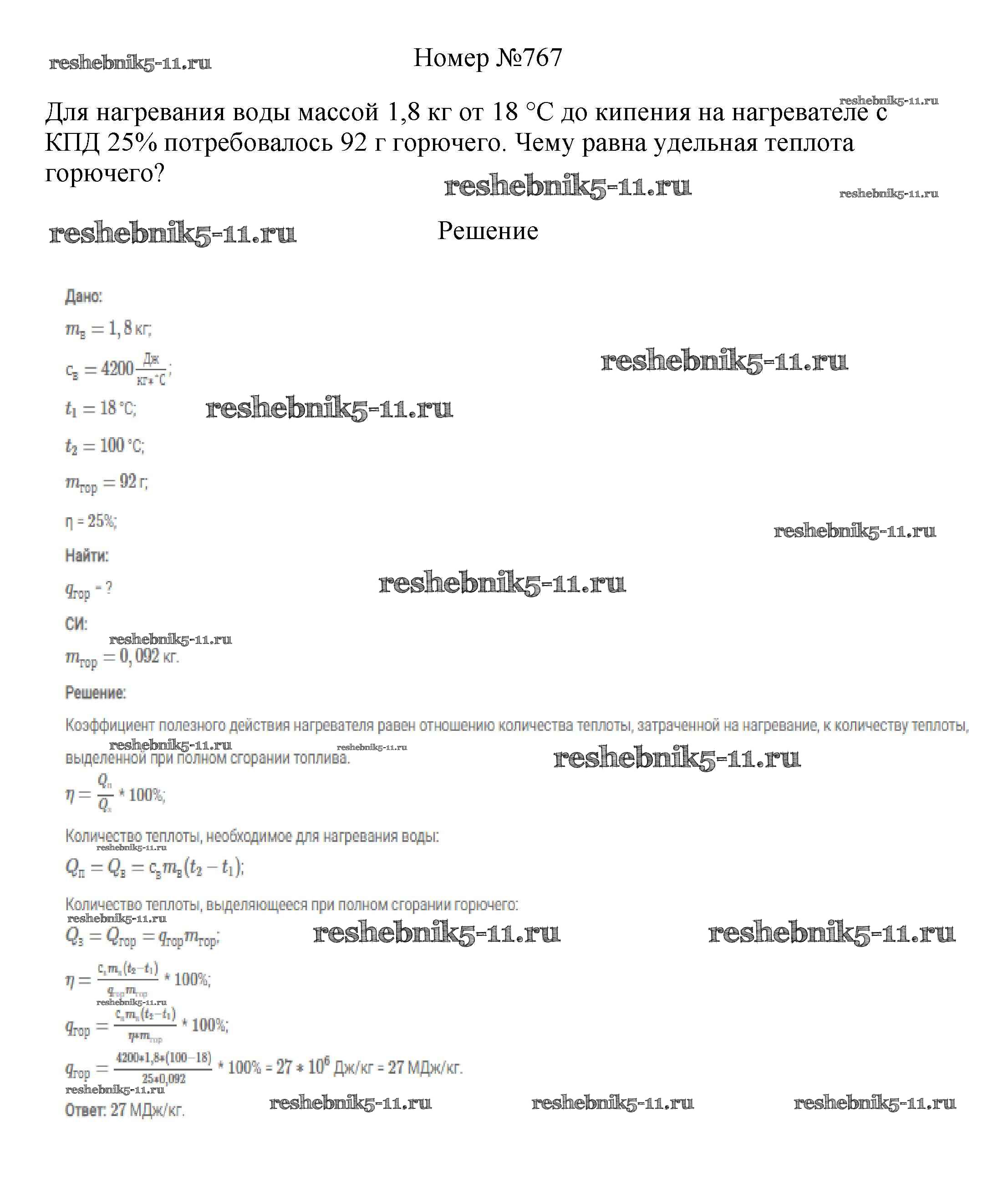 Готовая домашняя работа с ответами по Физике за 7, 8, 9 класс Марон, Позойский Сборник вопросов и задач Вертикаль Дрофа 2013 ФГОС - 8 класс 767