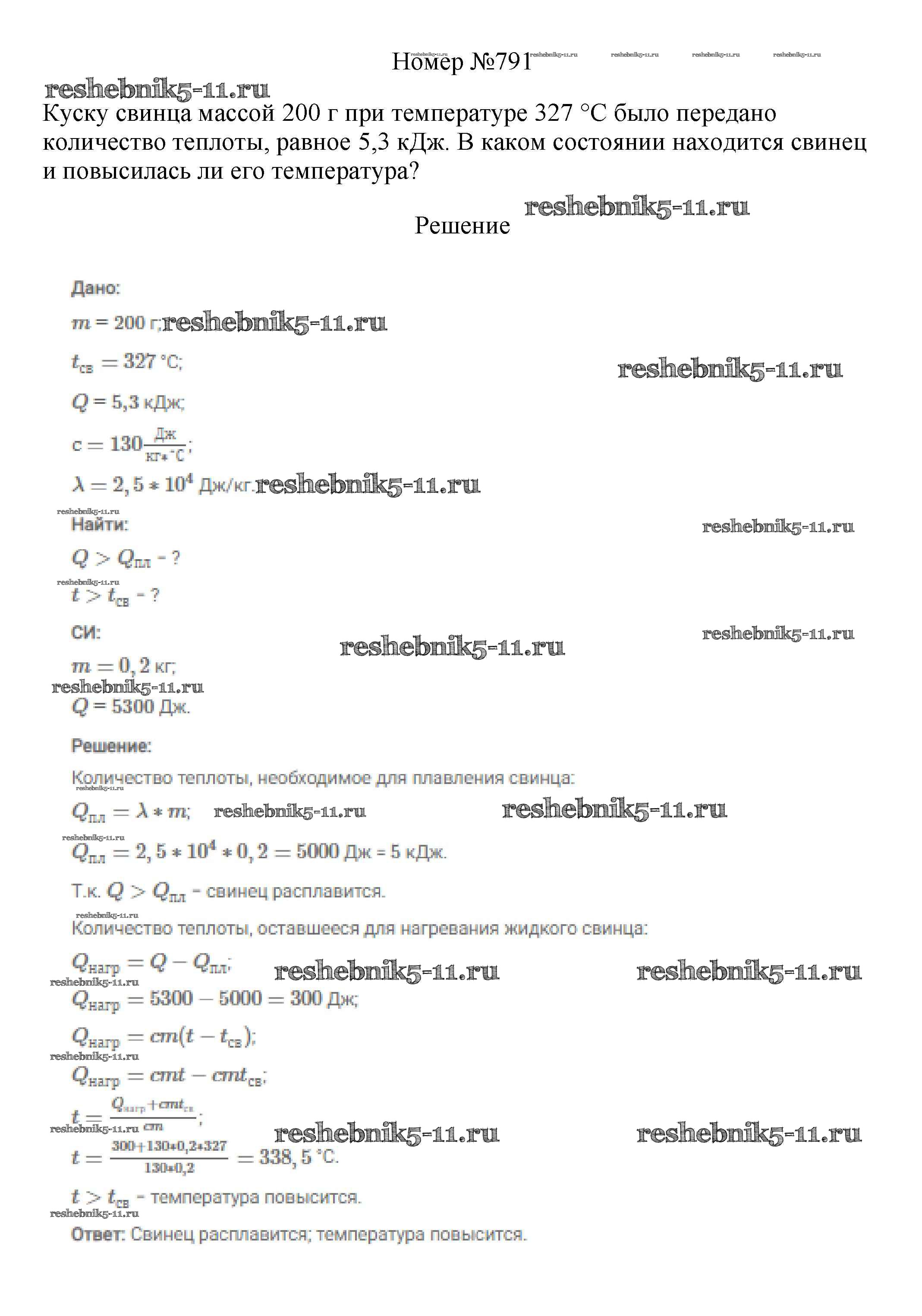 Готовая домашняя работа с ответами по Физике за 7, 8, 9 класс Марон, Позойский Сборник вопросов и задач Вертикаль Дрофа 2013 ФГОС - 8 класс 791
