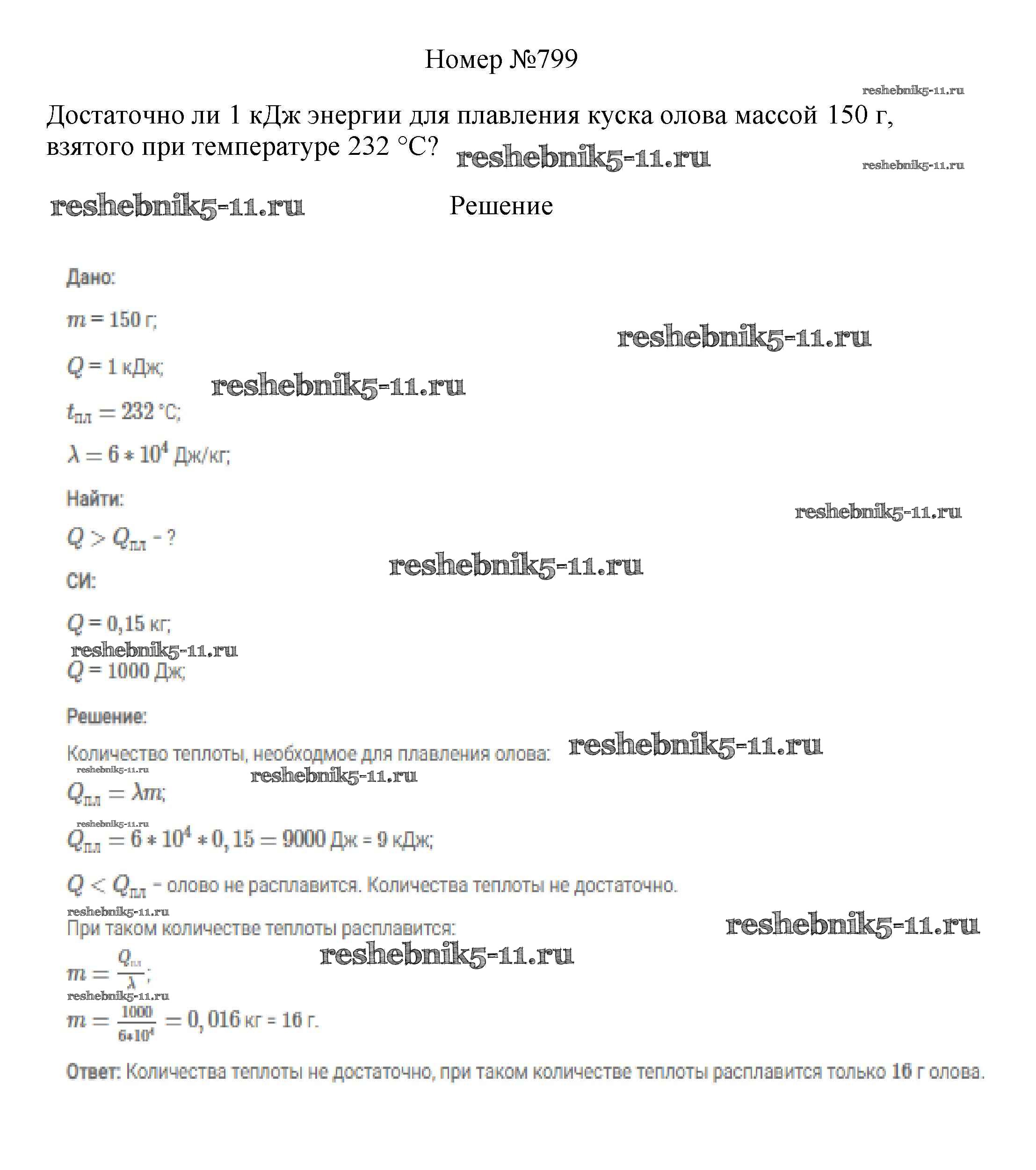 Готовая домашняя работа с ответами по Физике за 7, 8, 9 класс Марон, Позойский Сборник вопросов и задач Вертикаль Дрофа 2013 ФГОС - 8 класс 799