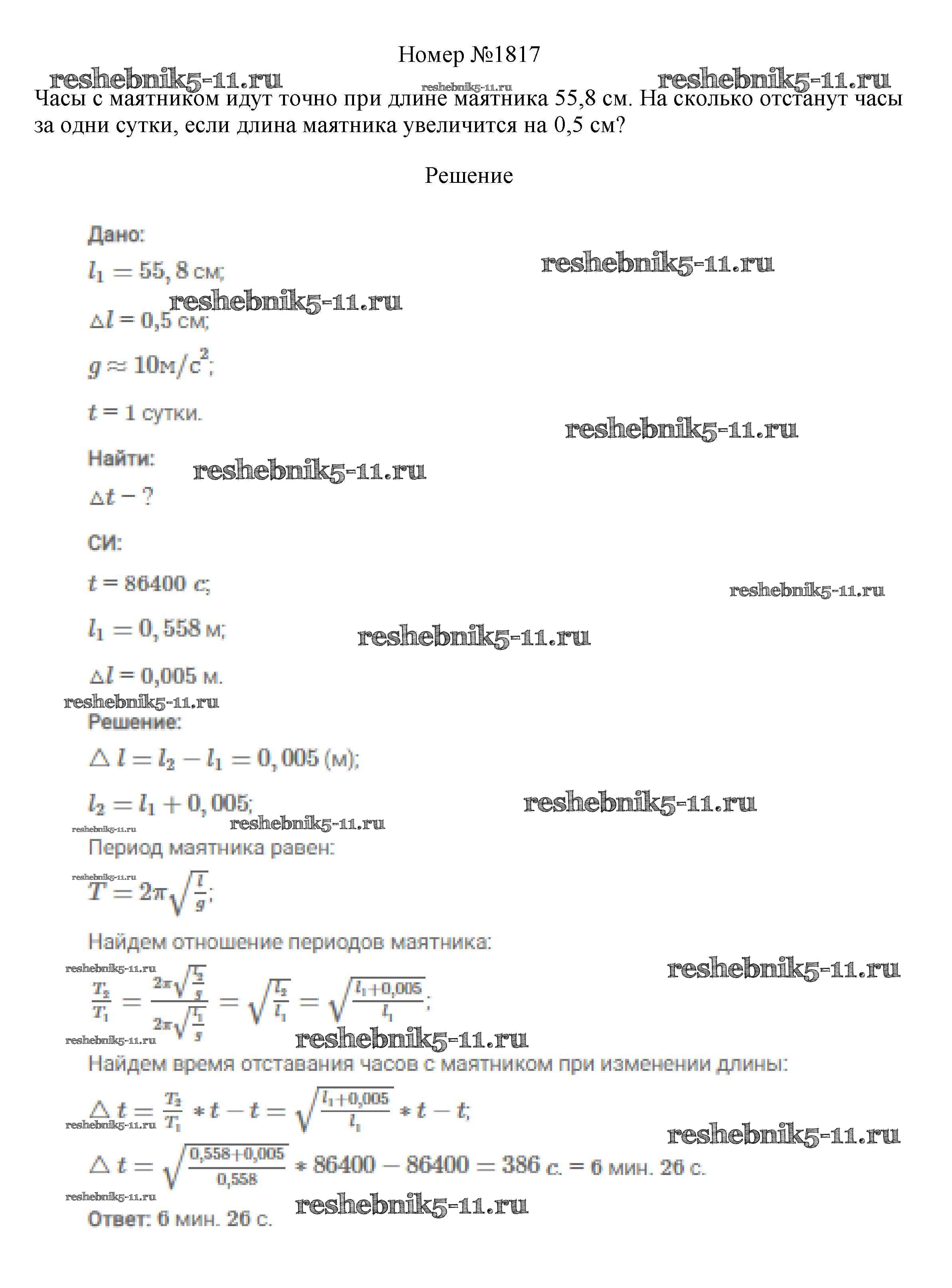 Готовая домашняя работа с ответами по Физике за 7, 8, 9 класс Марон, Позойский Сборник вопросов и задач Вертикаль Дрофа 2013 ФГОС - 9 класс 1817