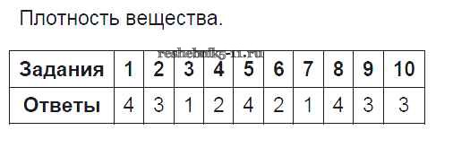 Готовая домашняя работа с ответами по Физике за 7 класс Чеботарева Тесты УМК Экзамен 2017 ФГОС - Часть 1 Плотность вещества