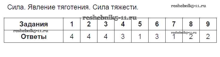 Готовая домашняя работа с ответами по Физике за 7 класс Чеботарева Тесты УМК Экзамен 2017 ФГОС - Часть 2 Сила. Явление тяготения. Сила тяжести