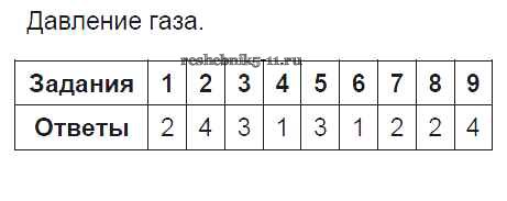 Готовая домашняя работа с ответами по Физике за 7 класс Чеботарева Тесты УМК Экзамен 2017 ФГОС - Часть 1 Давление газа