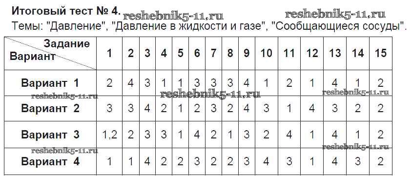 Решебник / глава 3. давление твердых тел жидкостей, газов / часть 1 / итоговый тест №4