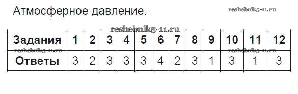 Готовая домашняя работа с ответами по Физике за 7 класс Чеботарева Тесты УМК Экзамен 2017 ФГОС - Часть 2 Атмосферное давление