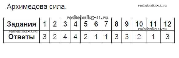 Готовая домашняя работа с ответами по Физике за 7 класс Чеботарева Тесты УМК Экзамен 2017 ФГОС - Часть 2 Архимедова сила